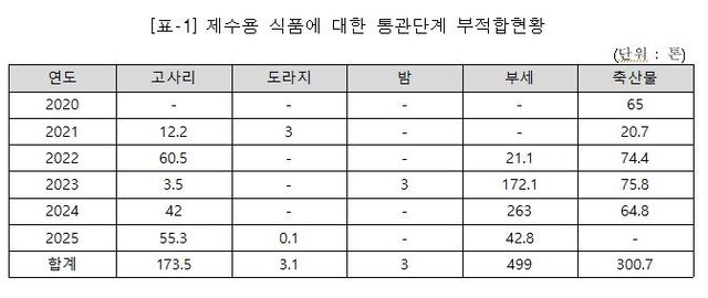 Â÷·Ê»ó¿¡ ÀÚÁÖ ¿À¸£´Â ǰ¸ñ¿¡¼ ¹Ýº¹ÀûÀ¸·Î Àû¹ßµÇ´Â ¸¸Å ¿¹¹æÀû °ü¸®°¡ ÇÊ¿äÇÏ´Ù´Â ÁöÀûÀÌ Á¦±âµÈ´Ù. Àü ÀÇ¿øÀº ¡°¿ÃÇØ »ó¹Ý±â¿¡¸¸ °í»ç¸®¡¤ ºÎ¼¼¡¤µµ¶óÁö µî 100£ô °¡±î¿î Á¦¼ö¿ë ½ÄǰÀÌ ºÎÀûÇÕ ÆÇÁ¤À» ¹Þ¾Æ ¹Ý¼Û¡¤Æó±âµÆ´Ù¡±¸ç ¡°¸íÀýÀ» ¾ÕµÎ°í Åë°ü ´Ü°èÀÇ Ã¶ÀúÇÑ °Ë»ç¿Í °íÀ§Çè ǰ¸ñ¿¡ ´ëÇÑ ¼±Á¦Àû °ü¸®°¡ ¹«¾ùº¸´Ù Áß¿äÇÏ´Ù¡±°í °Á¶Çß´Ù.