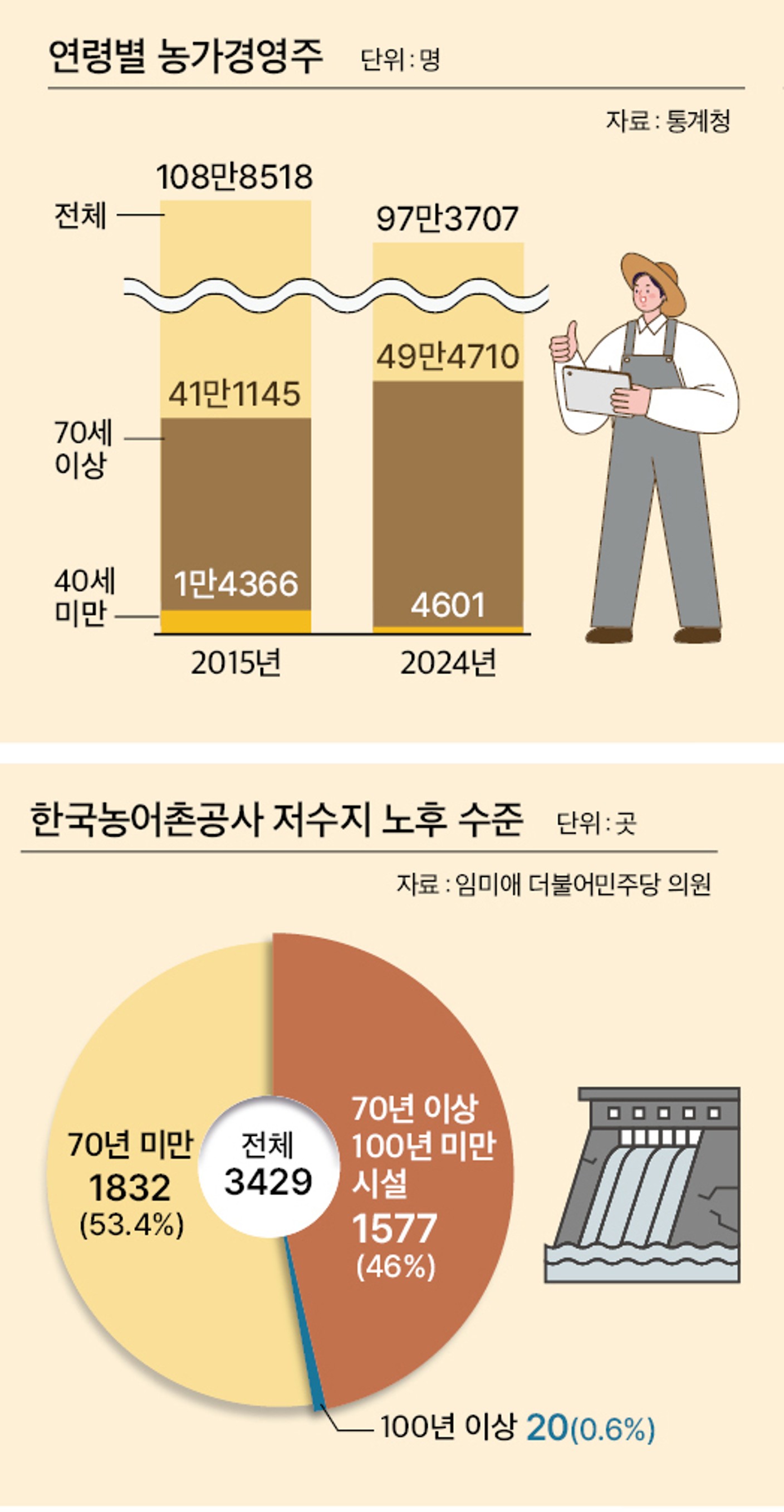 ½ÇÁ¦ ³óÃÌÀÇ ÀçÇØ ´ëÀÀ ½Ã¼³Àº ¿©ÀüÈ÷ °ú°Å ¼öÁØ¿¡ ¸Ó¹°·¯ ÀÖ´Ù. ÀÓ¹Ì¾Ö ´õºÒ¾î¹ÎÁÖ´ç ÀÇ¿ø(ºñ·Ê´ëÇ¥)¿¡ µû¸£¸é Çѱ¹³ó¾îÃ̰ø»ç°¡ °ü¸®ÇÏ´Â Àü±¹ Àú¼öÁö 3429°÷ °¡¿îµ¥ 70³â ÀÌ»ó µÈ ½Ã¼³ÀÌ 2024³â ±âÁØ 1597°÷(46.6%)¿¡ ´ÞÇÑ´Ù. ÀÌ·± »óȲ¿¡µµ ³»³âµµ Á¤ºÎ ¿¹»ê¾È¿¡¼ ¡®¼ö¸®½Ã¼³°³º¸¼ö¡¯ ¿¹»êÀº 7478¾ï¿øÀ¸·Î ¿ÃÇØ(7617¾ï¿ø)º¸´Ù 139¾ï¿ø ÁÙ¾ú´Ù. À̱¤¾ß Ãæ³²´ëÇб³ ¿¬±¸±³¼ö(Çѱ¹³ó°øÇÐȸ ±â¼úºÎȸÀå)´Â ¡°´Ü¼øÈ÷ ½Ã¼³À» °³º¸¼öÇÏ´Â µ¥ ±×Ä¡Áö ¾Ê°í, ½Ã¼³ÀÌ °üÇÒÇϰųª ¿µÇâÀ» ¹ÌÄ¡´Â ³ó°æÁö¿Í ÁÖº¯ °ø°£±îÁö Æ÷ÇÔÇØ Á¤ºñÇÏ´Â Â÷¼¼´ë ³ó¾÷»ý»ê±â¹Ý ±¸ÃàÀ¸·Î ÀüÈ¯ÇØ¾ß ÇÑ´Ù¡±°í °Á¶Çß´Ù.