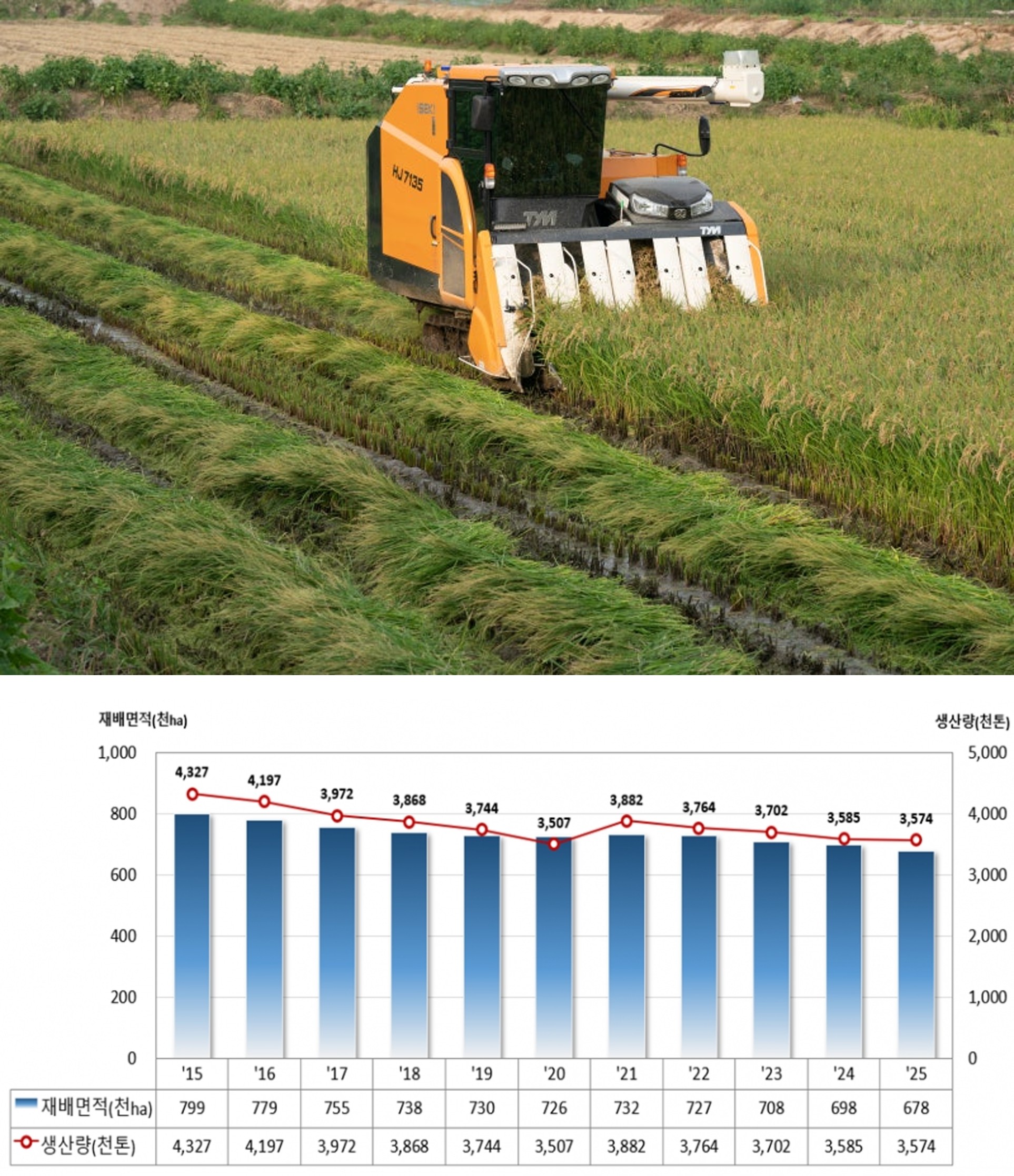 10¿ù 2ÀÏ ±¹°¡µ¥ÀÌÅÍó°¡ ¹ßÇ¥ÇÑ ÀÚ·á¿¡ µû¸£¸é, 2025³â»ê ½Ò ¿¹»ó »ý»ê·®Àº 357¸¸ 4õ ÅæÀ¸·Î Áý°èµÆ´Ù. ÀÌ´Â Áö³Çغ¸´Ù 1¸¸ 1õ Åæ(0.3%) °¨¼ÒÇÑ ¼öÄ¡´Ù.