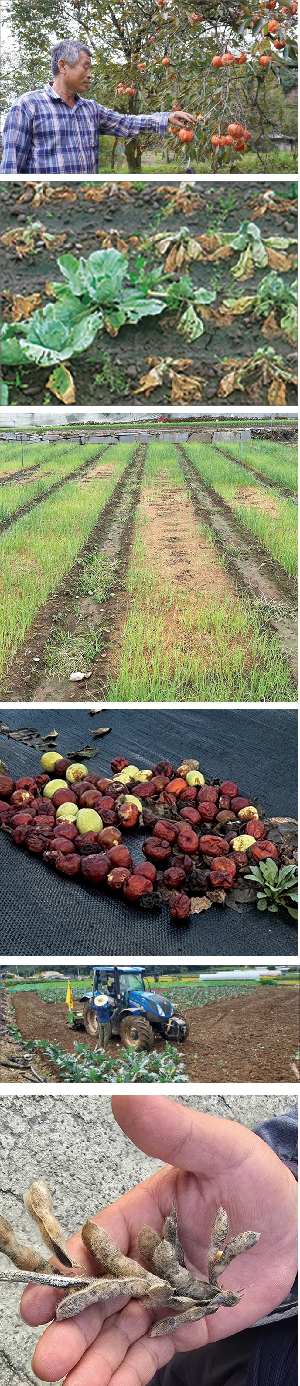 °ú¼ö³ó°¡¿¡¼­´Â ¿­¸ÅÅÍÁü(¿­°ú)°ú ³«°ú ÇÇÇØ°¡ µÎµå·¯Áø´Ù. Ãæ³² ³í»ê½Ã ¾çÃ̸鿡¼­´Â ¼öÈ®À» ÄÚ¾Õ¿¡ µÐ ¶µÀº°¨³ó°¡µéÀÌ Å« Å¸°ÝÀ» ºÃ´Ù. 9¿ù °í¿Â¿¡ ³ëÃâµÆ´ø ¿­¸Å°¡ 10¿ùÃÊ Áö¼ÓÀûÀΠºñ·Î °úµµÇÑ ¼öºÐÀ» Èí¼öÇØ ÅÍÁö°Å³ª ¶³¾îÁø °ÍÀÌ´Ù. ¾çÃ̳óÇù¿¡ µû¸£¸é ¾çÃ̸頳» ¶µÀº°¨³ó°¡ 67°÷ ´ëºÎºÐÀÌ ¿­°ú¿Í ³«°ú ÇÇÇØ¸¦ ºÃ´Ù. 1.3§µ(4000Æò) ±Ô¸ðÀÇ °¨³ª¹« °ú¿øÀ» ¿î¿µÇϴ ±èÁؼö¾¾(68)´Â ¡°ÀÏ´Ü ¼öÈ®Àº Çϰí ÀÖÁö¸¸ ¿ÃÇØ Á¤»ó°ú°¡ 50%´Â µÉÁö ¸ð¸£°Ú´Ù¡±°í ÇÑźÇß´Ù.