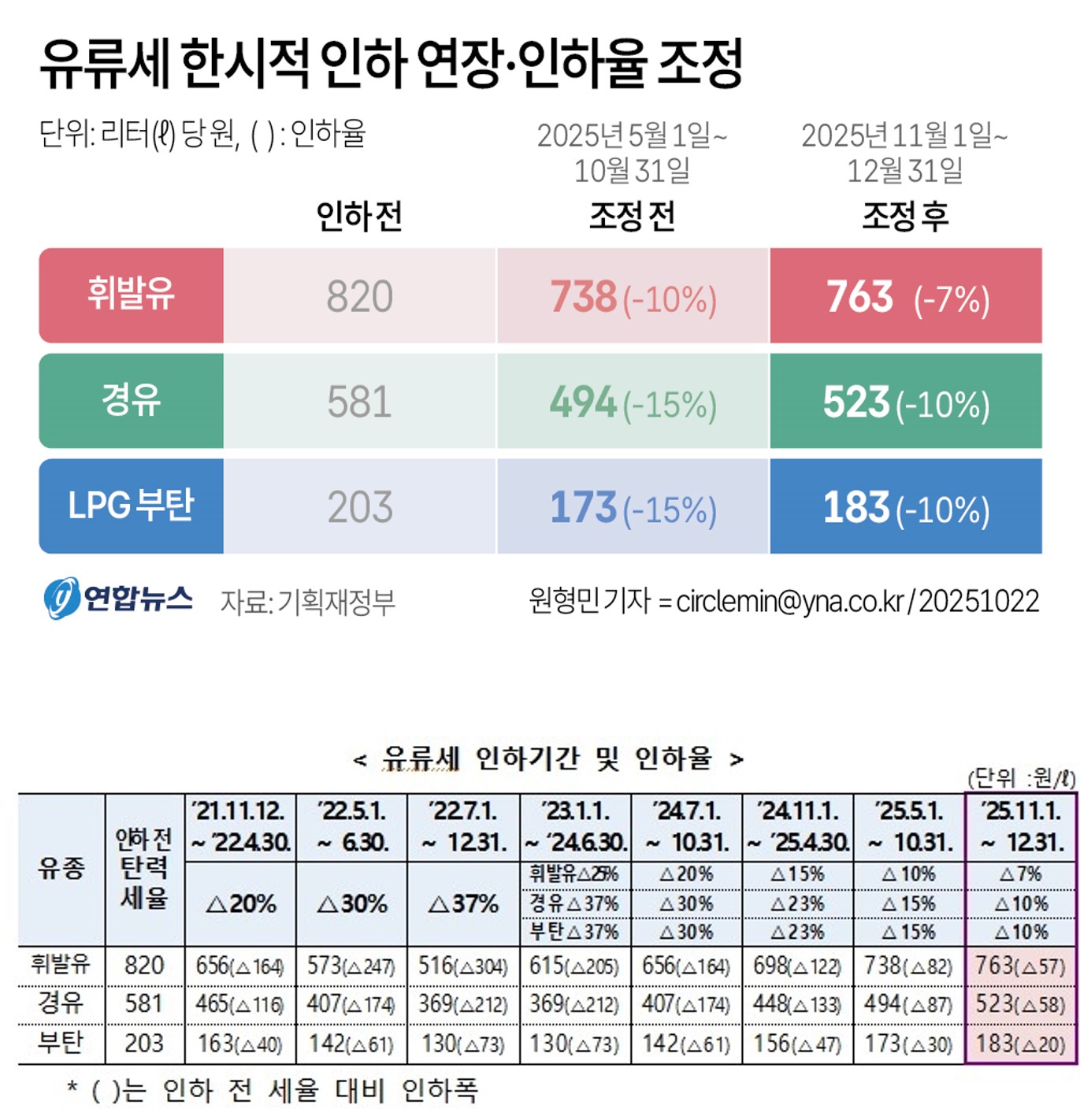 ´ÙÀ½ ´ÞºÎÅÍ ÈÖ¹ßÀ¯ ÀÎÇÏÀ²Àº ÇöÇà 10%¿¡¼ 7%·Î, °æÀ¯ ¹× ¾×ȼ®À¯°¡½º(LPG)ºÎź ÀÎÇÏÀ²Àº ÇöÇà 15%¿¡¼ 10%·Î °¢°¢ ÇÏÇâÁ¶Á¤µÈ´Ù.