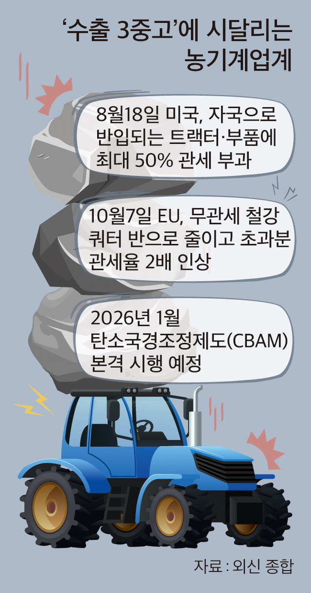 ÁÖ¿ä ³ó±â°è¾÷°è ¼öÃâ ȯ°æ¿¡ µå¸®¿öÁø °ËÀº ±×¸²ÀÚ°¡ ´õ¿í £¾îÁ³´Ù. ÁÖ·Â ¼öÃâ½ÃÀåÀÎ ¹Ì±¹ÀÇ ´ëüÁö·Î ¿©°ÜÁ³´ø À¯·´¿¬ÇÕ(EU)¸¶Àú ö°Á¦Ç°¿¡ °íÀ² °ü¼¼¸¦ ¸Å±â°Ú´Ù°í °øÇ¥Çϸ鼴Ù. µÎ´Þ¿© ÈÄ¿£ ¡®Åº¼Ò±¹°æÁ¶Á¤Á¦µµ(CBAM)¡¯°¡ ½ÃÇàµÇ¸é¼ À¯·´ ¼öÃâ·Î Ȱ·Î¸¦ ¸ð»öÇÏ·Á´ø ¾÷°èÀÇ ±¸»óÀÌ Æ²¾îÁú À§±â¿¡ óÇß´Ù.