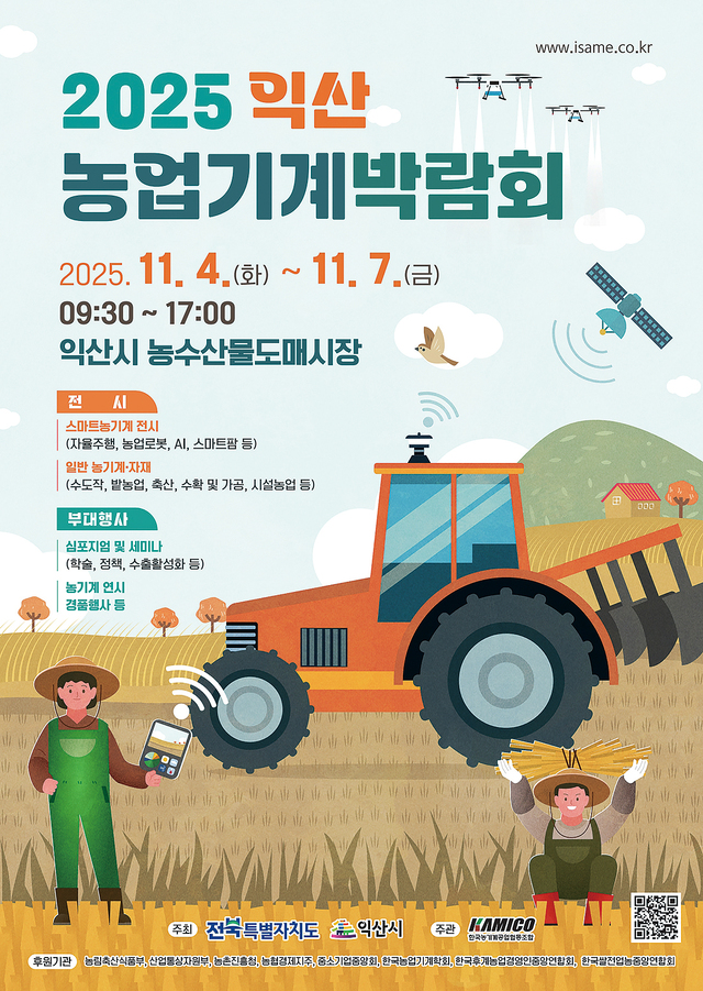 ¡®2025 ÀÍ»ê³ó¾÷±â°è¹Ú¶÷ȸ¡¯°¡ 11¿ù4¡7ÀÏ ÀüºÏ ÀÍ»ê½Ã ³ó¼ö»ê¹°µµ¸Å½ÃÀå¿¡¼ ¿¸³´Ï´Ù. ¿ÃÇØ´Â 205°³ ¾÷ü°¡ Âü¿©ÇØ ¡ãÀÚÀ²ÀÛ¾÷ ³ó±â°è ¡ãÀΰøÁö´É(AI) ·Îº¿ ¡ã½º¸¶Æ®ÆÊ µî ¹Ì·¡Çü ³ó±â°è¡¤ÀÚÀ縦 Àü½ÃÇÒ ¿¹Á¤ÀÔ´Ï´Ù. ½º¸¶Æ®³ó¾÷ÀÇ ÇöÀç¿Í ¹Ì·¡¸¦ ¹Ú¶÷ȸ¿¡¼ ¸¸³ªº¸¼¼¿ä.