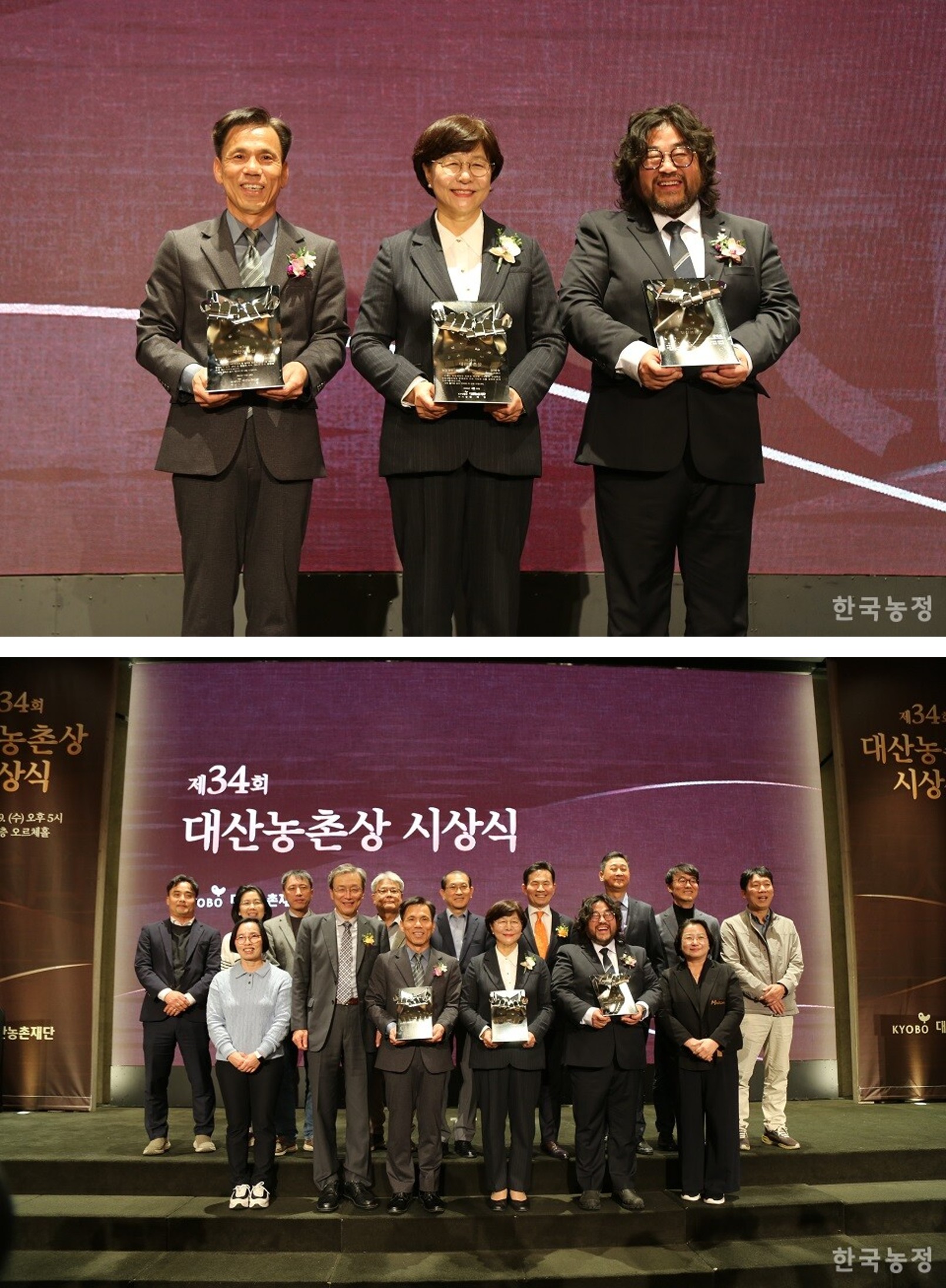 * Á¦34ȸ ´ë»ê³óÃÌ»ó ¼ö»óÀÚµé. ¿ÞÂʺÎÅÍ ±èµ¿°ü Àü¶ó³²µµ³ó¾÷±â¼ú¿ø ÀÚ¿ø°æ¿µ°úÀå(³ó¾÷°øÁ÷ ºÎ¹®), ¾çÇý¼÷ ³ó¾÷ȸ»ç¹ýÀÎ(ÁÖ) ¾ÆÄ§¹Ì¼Ò ´ëÇ¥ÀÌ»ç(³ó¾÷°æ¿µ ºÎ¹®), Ȳ¹ÎÈ£ (»ç)Ä¿¹Â´ÏƼÀú³Î¸®Áò¼¾ÅÍ ÀÌ»çÀå(³óÃ̹ßÀü ºÎ¹®).
