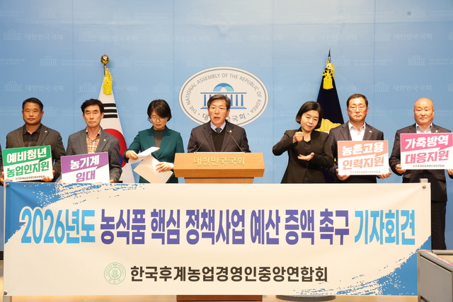 * Çѱ¹Èİè³ó¾÷°æ¿µÀÎÁß¾Ó¿¬ÇÕȸ´Â 3ÀÏ ±¹È¸ ¼ÒÅë°ü¿¡¼ ÀÓ¹Ì¾Ö ´õºÒ¾î¹ÎÁÖ´ç ±¹È¸ÀÇ¿ø°ú ±âÀÚȸ°ßÀ» ¿¾î ¡®2026 ³ó½Äǰ ÇÙ½É Á¤Ã¥»ç¾÷ ¿¹»ê Áõ¾× ¿ä±¸»çÇס¯ À» ¹ßÇ¥Çß´Ù. ÃÖÈï½Ä ÇÑ³ó¿¬ È¸Àå(°¡¿îµ¥)ÀÌ ±âÀÚȸ°ß¹®À» Àаí ÀÖ´Ù. ±èº´Áø ±âÀÚ
