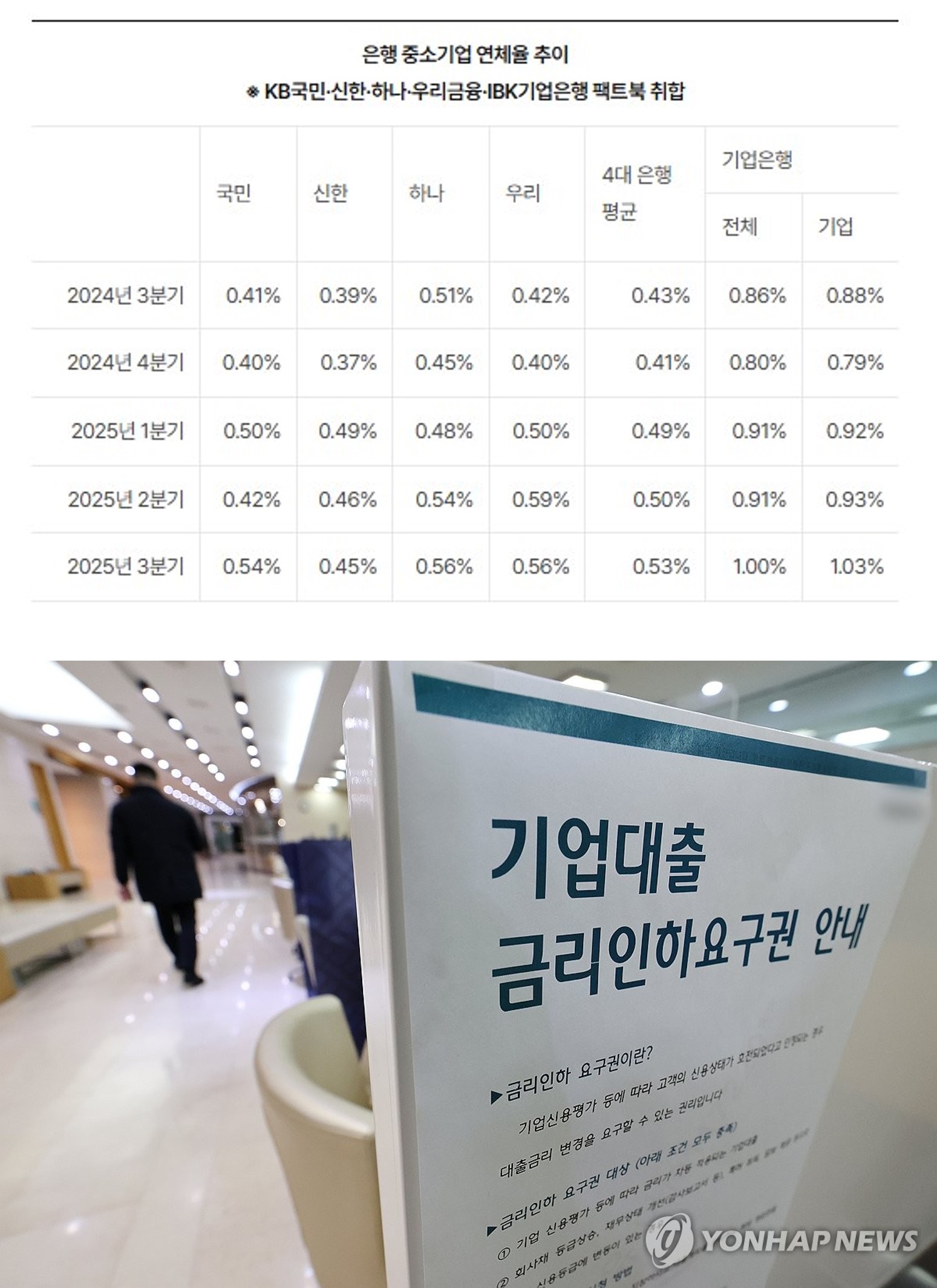 ±¹¹ÎÀºÇàÀÇ Áß¼Ò±â¾÷ ¿¬Ã¼À²ÀÌ 0.54%·Î, Àü ºÐ±â(0.42%)º¸´Ù 0.12%p ¶Ù¾ú´Ù.