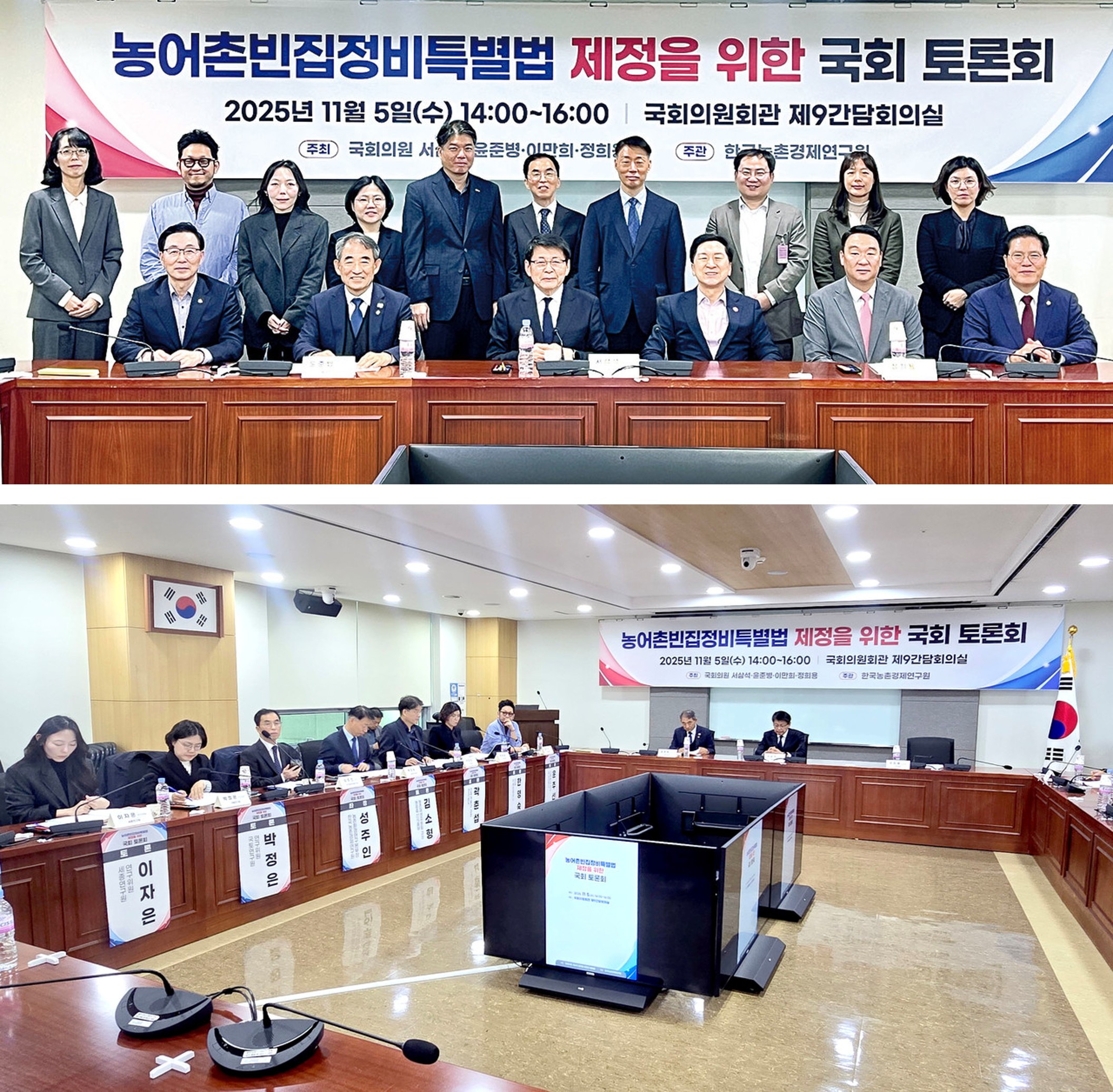 Áö³ 5ÀÏ ±¹È¸ÀÇ¿øÈ¸°ü Á¦9°£´ãȸ½Ç¿¡¼´Â ´õºÒ¾î¹ÎÁÖ´ç ¼»ï¼®(Àü³² ¿µ¾Ï¡¤¹«¾È¡¤½Å¾È)¡¤À±Áغ´(ÀüºÏ Á¤À¾¡¤°íâ) ÀÇ¿ø°ú ±¹¹ÎÀÇÈû À̸¸Èñ(°æºÏ ¿µÃµ¡¤Ã»µµ)¡¤Á¤Èñ¿ë(°æºÏ °í·É¡¤¼ºÁÖ¡¤Ä¥°î) ÀÇ¿øÀÌ °øµ¿ ÁÖÃÖÇϰí Çѱ¹³óÃ̰æÁ¦¿¬±¸¿øÀÌ ÁÖ°üÇÑ ¡®³ó¾îÃ̺óÁýÁ¤ºñƯº°¹ý Á¦Á¤À» À§ÇÑ ±¹È¸ Åä·Ðȸ¡¯°¡ ¿·È´Ù. Àü±¹ ¾à 7¸¸8000È£·Î ÃßÁ¤µÇ´Â ³ó¾îÃÌ ºóÁýÀÇ ÇØ¹ýÀ» ¸ð»öÇϱâ À§ÇØ, Ưº°¹ý¾ÈÀ» °¢°¢ ¹ßÀÇÇÑ 4¸íÀÇ ÀÇ¿øÀÌ °øµ¿ ÁÖÃÖÇÑ À̹ø Åä·Ðȸ´Â ¹ý¾È Á¦Á¤À» À§ÇÑ °øÃ»È¸ ¼º°ÝÀ» ¶ì¸ç ÀÔ¹ý ÃëÁö¿Í ÃßÁø ¹æÇâÀ» °øÀ¯ÇÏ´Â ÀÚ¸®¿´´Ù.