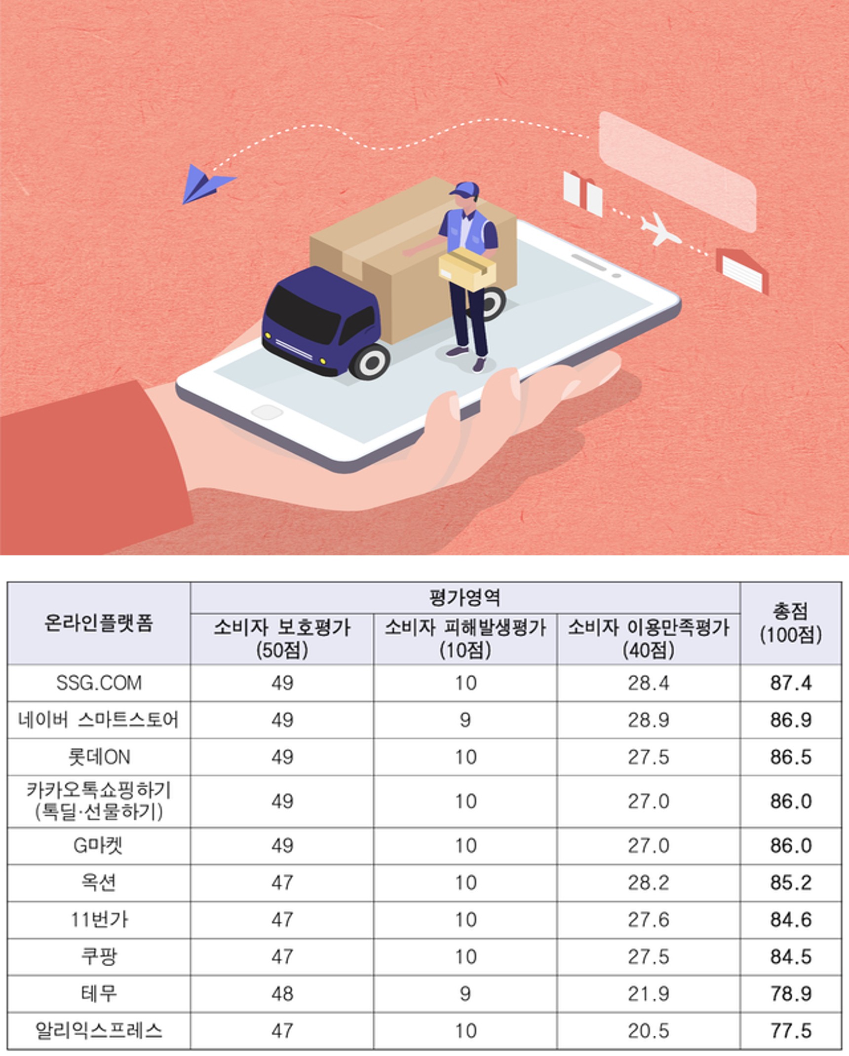 ¼¿ï½ÃÀüÀÚ»ó°Å·¡¼¾ÅÍ´Â ÀÇ·ù, ½Äǰ µî ƯÁ¤ ǰ¸ñ Àü¹®¸ô°ú Ȩ¼îÇÎÀ» Á¦¿ÜÇÑ Åë½ÅÆÇ¸Å¾÷½Å°í ±âÁØ ±¹³» ¼ÒºñÀÚ¿¡°Ô ¼ºñ½º¸¦ Á¦°øÇÏ´Â ÁÖ¿ä 10°³ ¿Â¶óÀÎÇ÷§ÆûÀ» Æò°¡ÇÑ °á°ú¸¦ 7ÀÏ ¹ßÇ¥Çß´Ù. Æò°¡´Â ¡ã¼ÒºñÀÚ º¸È£ ¡ã¼ÒºñÀÚ ÇÇÇØ ¹ß»ý ¡ã¼ÒºñÀÚ ÀÌ¿ë ¸¸Á· µî 3°³ ºÐ¾ß¿¡¼ ÁøÇàµÆÀ¸¸ç, ¸¸Á·µµ Á¶»ç´Â Áö³´Þ 2ÀϺÎÅÍ 14ÀϱîÁö Ç÷§Æû ÀÌ¿ë °æÇèÀÌ ÀÖ´Â 20~50´ë ¼ÒºñÀÚ 1000¸íÀ» ´ë»óÀ¸·Î ½Ç½ÃµÆ´Ù.