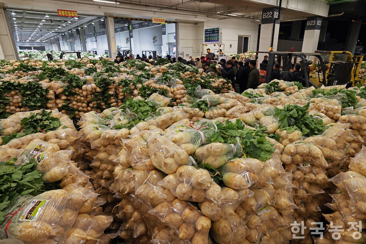 ÀÌ¿¡ °ø»ç¿¡¼± ¿ÃÇØ ±èÀåöÀ» ¾ÕµÎ°í ¡âǰ¸ñº° °Å·¡±¸¿ª Á¶Á¤ ¡â¸ÅÀÜǰ(³«Âû ÀÌÈÄ °æ¸ÅÀå¿¡ ³²°Ü³õÀº ³ó»ê¹°) Á¤ºñ ¡â3Ãþ °ø°£ Ȱ¿ë µîÀÇ ³»¿ëÀ» ´ã¾Æ ´ëÃ¥À» ¸¶·ÃÇß´Ù. ±èÀå ±Ø¼º¼ö±âÀÎ 11¿ù µÑ°ÁÖºÎÅÍ 11¿ù ³Ý°ÁÖ»Ó¸¸ ¾Æ´Ï¶ó 11¿ù ù°ÁÖºÎÅÍ 12¿ù ù°ÁÖ¸¦ ¼º¼ö±â·Î ±ÔÁ¤ÇÏ°í ¹èÃß¡¤¹«¡¤ÃѰ¢¹« µî ÁÖ¿ä ǰ¸ñµéÀÇ °æ¸ÅÀå Ȱ¿ë ¹æ¾ÈÀ» Á¦½ÃÇÑ °ÍÀÌ´Ù. ¼º¼ö±â¿¡ °¢ ǰ¸ñº° °Å·¡±¸¿ªÀ» Ãß°¡·Î ºÎ¿©ÇÑ °ÍÀÌ ÁÖ¿äÇѵ¥, ä¼Ò2µ¿ °Ç¹°ÀÇ ¹ÝÀÔ¡¤¹ÝÃâÀåÀ» Ȱ¿ëÇÏ´Â ÇÑÆí ¼Ãø¸é ÀϺΠ°ø°£ µî¿¡¼µµ °æ¸Å°¡ ÀÌ·ïÁö°Ô Çã¿ëÇß´Ù. ¾Æ¿ï·¯ °æ¸ÅÀå °ø°£ È¿À²¼ºÀ» ±Ø´ëÈÇϱâ À§ÇØ ´çÀÏ ¿ÀÀü 8½Ã±îÁö ¸ÅÀÜǰÀ» Áßµµ¸ÅÀÎ Á¡Æ÷ °¢ ¸ÅÀå ¶Ç´Â 3Ãþ °ø°£À¸·Î À̵¿Åä·Ï Çß°í, ±èÄ¡°øÀå ¹°·®, ÀýÀÓ¹èÃß ¹× aT ºñÃ๰·® µîÀº 1Ãþ °æ¸ÅÀåÀÌ ¾Æ´Ñ 3Ãþ °ø°£¿¡¼ °Å·¡Çϵµ·Ï Çß´Ù.