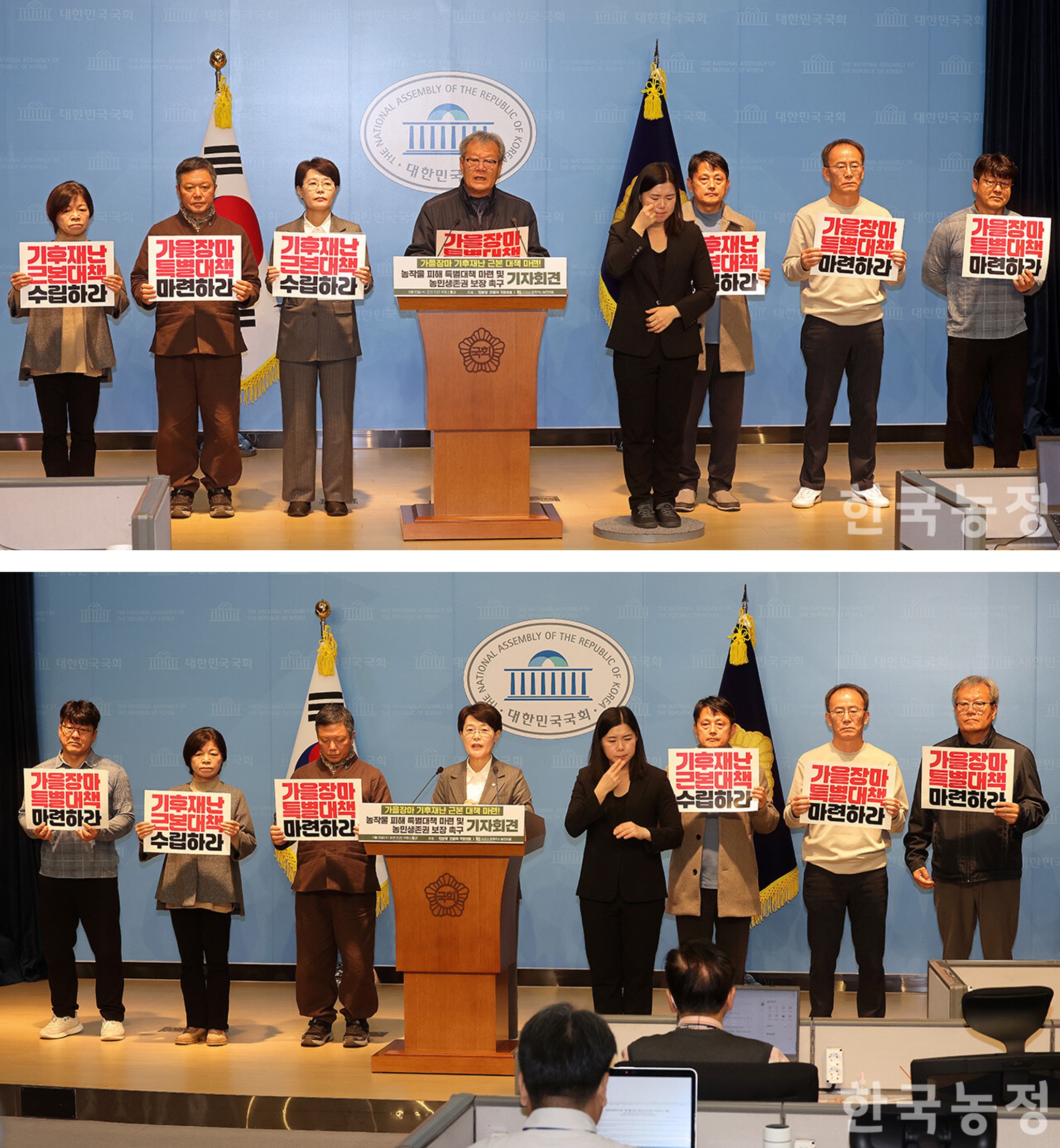 * 19ÀÏ ¿ÀÀü ±¹È¸ ¼ÒÅë°ü¿¡¼ ¿¸° ''°¡À»À帶 ±âÈÄÀç³ ±Ùº» ´ëÃ¥ ¸¶·Ã! ³óÀÛ¹° ÇÇÇØ Ưº°´ëÃ¥ ¸¶·Ã ¹× ³ó¹Î »ýÁ¸±Ç º¸Àå Ã˱¸ ±âÀÚȸ°ß''¿¡¼ ÀüÁ¾´ö Áøº¸´ç ÀÇ¿ø(¹ß¾ð´ë)ÀÌ ¿ÃÇØ °¡À»À帶·Î ÇÇÇØ°¡ Å« ³ó¹Îµé¿¡ ´ëÇÑ Æ¯º°´ëÃ¥ ¸¶·ÃÀ» Á¤ºÎ¿¡ Ã˱¸Çϰí ÀÖ´Ù. ÇѽÂÈ£ ±âÀÚ