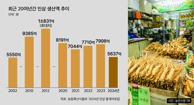 º»Áö°¡ ÃÖ±Ù ÀÔ¼öÇÑ ³ó¸²Ãà»ê½ÄǰºÎÀÇ ¡®2024³â Àλï Åë°èÀÚ·áÁý¡¯À» º¸¸é Áö³ÇØ ÀÎ»ï »ý»ê¾×Àº 5637¾ï¿øÀ¸·Î Áý°èµÆ´Ù. Àü³â(7998¾ï¿ø)°ú °ßÁà 29.5% ±Þ¶ôÇß´Ù. ¿¬°£ Ç϶ôÆøÀ¸·Î´Â 1980³â Áý°è ÀÌÈÄ ÃÖ´ëÆøÀÌ°í ±Ý¾×À¸·Î´Â 2002³â(5550¾ï¿ø) ÀÌÈÄ ÃÖÀúÄ¡´Ù.