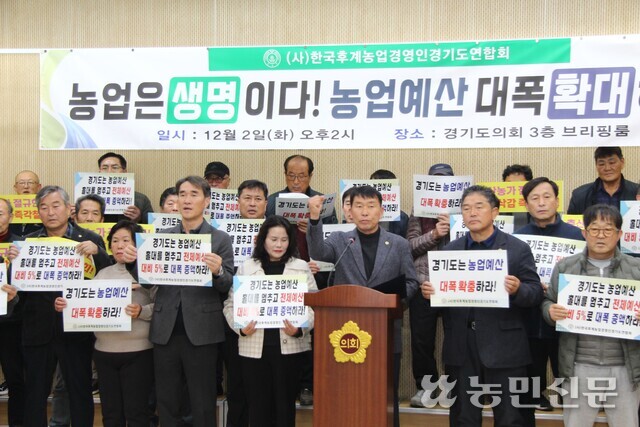 Çѱ¹Èİè³ó¾÷°æ¿µÀΰæ±âµµ¿¬ÇÕȸ(ȸÀå Á¤Á¤È£)´Â 2ÀÏ °æ±âµµÀÇȸ¿¡¼ ±âÀÚȸ°ßÀ» ¿°í ¡°°æ±âµµ´Â ³ó¾÷¿¹»êÀ» ´ëÆø È®´ëÇ϶󡱰í Ã˱¸Çß´Ù. Á¤Á¤È£ ȸÀåÀº ¡°³ó¾÷Àº »ý¸íÀÌ¸ç ´õ ÀÌ»ó ³ó¾÷ÀÎÀÇ ÀϹæÀû Èñ»ýÀ» °¿äÇØ¼´Â ¾È µÈ´Ù¡±¸ç ¡°µµ´Â ³ó¾÷¿¹»ê ºñÀ²À» Àüü ¿¹»êÀÇ 5% ÀÌ»óÀ¸·Î ´Ã·Á¾ß ÇÑ´Ù¡±°í ¿ä±¸Çß´Ù. À̳¯ Á¤Á¤È£ ȸÀå°ú ±èź¹ ¼ö¼®ºÎȸÀåÀº ±âÀÚȸ°ßÀå¿¡¼ ³ó¾÷¿¹»ê È®´ë¸¦ Ã˱¸ÇÏ¸ç »è¹ßÀ» ´ÜÇàÇϱ⵵ Çß´Ù.
