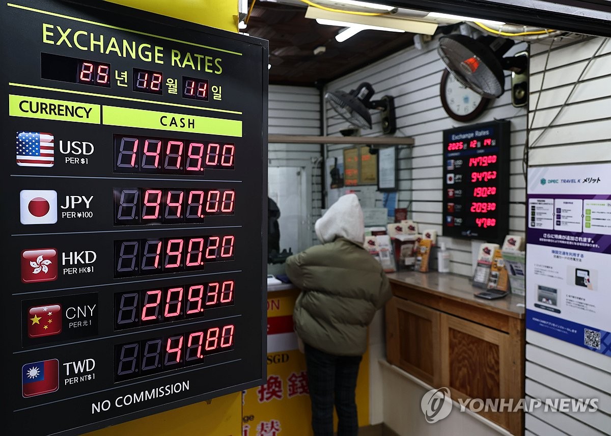 (¼­¿ï=¿¬ÇÕ´º½º) ±èÀÎö ±âÀÚ = ÀÌ´Þ ¿ø¤ý´Þ·¯ È¯À² Æò±ÕÀÌ 1,470¿øÀ» ³ÑÀ¸¸ç ¿ÜȯÀ§±â ÀÌÈÄ ¿ù°£ ±âÁØ ÃÖ°í ¼öÁØÀΠ°ÍÀ¸·Î ³ªÅ¸³­ 14ÀÏ ¼­¿ï Áß±¸ ¸íµ¿ÀÇ ÇѠȯÀü¼Ò ¸ð½À. ÀÌ Ãß¼¼´ë·Î¶ó¸é ¿ÃÇØ ¿¬Æò±Õ È¯À²Àº ¿ÜȯÀ§±â¸¦ ³Ñ¾î ¿ª´ë ÃÖ°í ¼öÁØÀ» ±â·ÏÇÒ °ÍÀ¸·Î Àü¸ÁµÈ´Ù. 2025.12.14