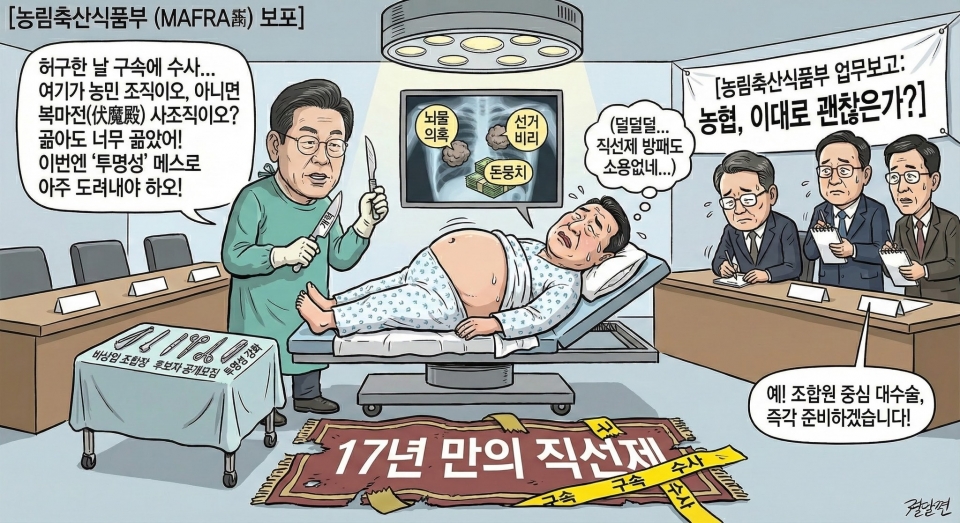 * ÀÌÀç¸í ´ëÅë·ÉÀÇ ³óÇù ºÎÆÐ °ü·Ã ¹ß¾ðÀº ´Ü¼øÈ÷ ¼±ÃâÁ÷ Áß¾ÓȸÀåÀ̳ª Á¶ÇÕÀåÀÇ ÀÏÅ»À» ÁöÀûÇÑ °ÍÀÌ ¾Æ´Ï´Ù. ÀÌ´Â ±×µéÀ» ¼±ÃâÇÑ ³ó¾÷°è Àüü°¡ ¿¬·çµÈ Áß´ëÇÑ »ç¾ÈÀ̶ó´Â ÀνÄÀÌ ÇÊ¿äÇÏ´Ù. (¡Ø ¸¸Æò À̹ÌÁö´Â Ä®·³ ³»¿ëÀ» ±â¹ÝÀ¸·Î ÀΰøÁö´ÉÀÌ »ý¼ºÇÑ °ÍÀÔ´Ï´Ù.)