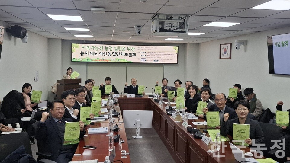 Áö³ 15ÀÏ ±¹È¸ ÀÇ¿øÈ¸°ü¿¡¼ 11°³ ³ó¹Î¡¤½Ã¹Î´Üü¿Í 6¸íÀÇ ±¹È¸ÀÇ¿øÀÌ ¸¶·ÃÇÑ ¡®Áö¼Ó°¡´ÉÇÑ ³ó¾÷ ½ÇÇöÀ» À§ÇÑ ³óÁöÁ¦µµ °³¼± ³ó¾÷´Üü Åä·Ðȸ¡¯°¡ ¿·È´Ù. ÃÖ±Ù ³óÁöÁ¦µµ¸¦ µÑ·¯½Ñ ÇöÀå°ú ±¹È¸ÀÇ ³¸Æ»óÀÌ ¿©½ÇÇÑ °¡¿îµ¥, Á¦µµ°³¼±¿¡ º¸´Ù °øÀû °üÁ¡À» Åõ¿µÇϱâ À§ÇÑ ÀÚ¸®¿´´Ù.
