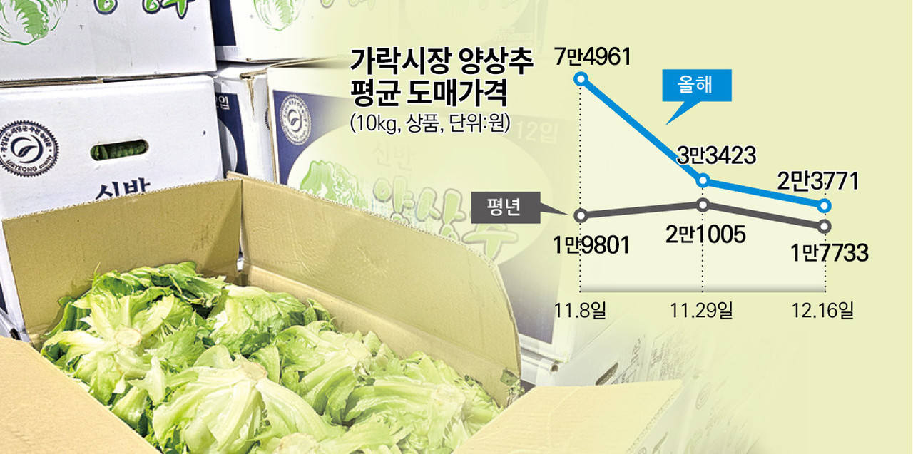 Áö³´Þ °¡¶ôµ¿ ³ó¼ö»ê¹°µµ¸Å½ÃÀå¿¡¼ °Å·¡µÈ ¾ç»óÃß Æò±Õ µµ¸Å°¡°Ý(10kg, »óǰ)Àº 5¸¸4029¿øÀ¸·Î Æò³â 1¸¸8516¿ø¿¡ ºñÇØ 3¹è °¡±îÀÌ »ó½ÂÇß´Ù. ÀÌ´Â Áö³ 10¿ù °¡À»À帶·Î ½ÀÇÑ ³¯¾¾°¡ À̾îÁö¸ç ¾ç»óÃß »êÁö¿¡ º´ÇØÃæÀÌ Ã¢±ÈÇÏ°í »ýÀ°µµ ºÒ·®ÇØ 11¿ù °¡¶ô½ÃÀå ÇÏ·ç Æò±Õ ÃâÇÏ·®ÀÌ 57ÅæÀ¸·Î Æò³â 71Åæ, Àü³â 61Åæ ´ëºñ ÁÙ¾îµç Å¿ÀÌ´Ù.
