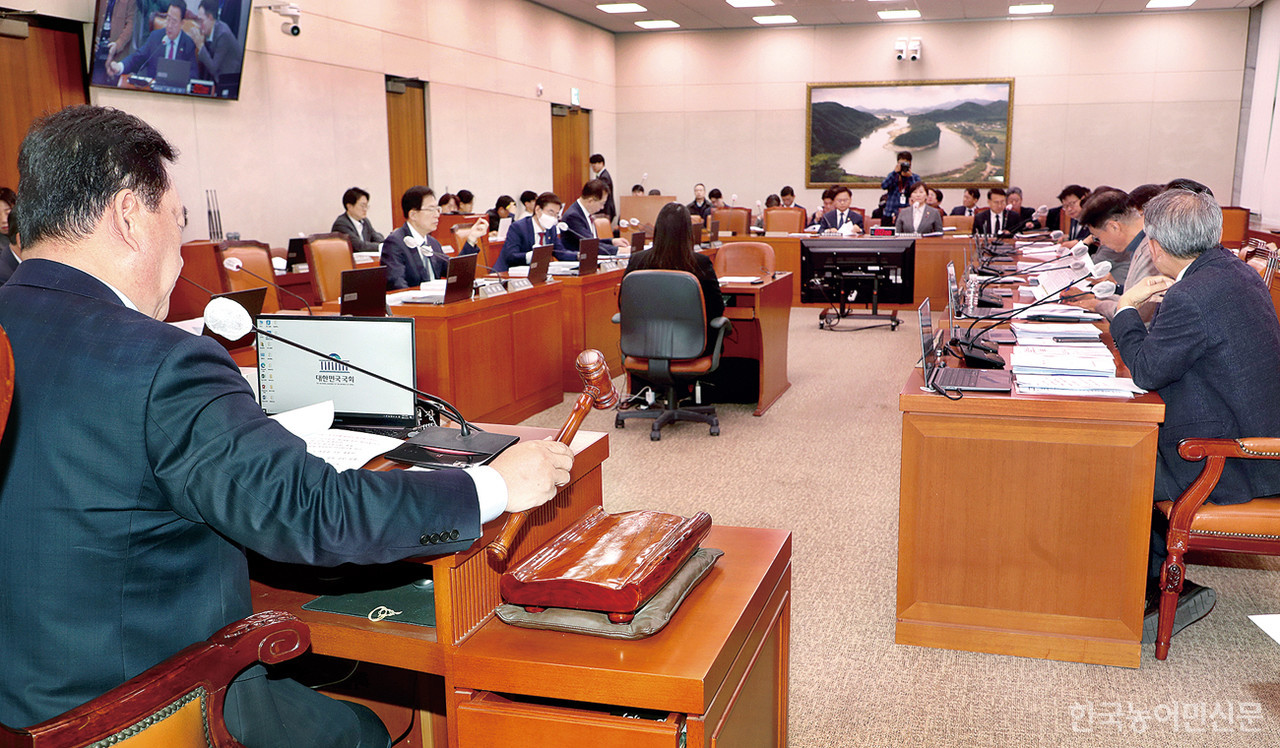 ±¹È¸ ³ó¸²Ãà»ê½ÄÇ°ÇØ¾ç¼ö»êÀ§¿øÈ¸´Â 19ÀÏ ÀüüȸÀǸ¦ ¿°í ³ó¸²Ãà»ê½Äǰ¹ý¾È½É»ç¼ÒÀ§¿øÈ¸°¡ ½É»çÇÑ ³ó¸²ºÐ¾ß 13°ÇÀÇ ¹ý·ü¾ÈÀ» ÀǰáÇß´Ù. À̳¯ ȸÀÇ¿¡¼´Â ³óÇù¹ý °³Á¤¾ÈÀÌ ÇÙ½É ¾È°ÇÀ¸·Î ´Ù·ïÁ³´Ù. ´õºÒ¾î¹ÎÁÖ´ç À±Áغ´¡¤¾ÈÈ£¿µ¡¤ÀÌ¿øÅá¤ÀÓ¹Ì¾Ö ÀÇ¿øÀÌ °¢°¢ ´ëÇ¥ ¹ßÀÇÇÑ ³ó¾÷Çùµ¿Á¶ÇÕ¹ý °³Á¤¾È 4°ÇÀº ÅëÇÕ¡¤Á¶Á¤µÈ ´ë¾ÈÀ¸·Î ³óÇØ¼öÀ§¸¦ Åë°úÇß´Ù.