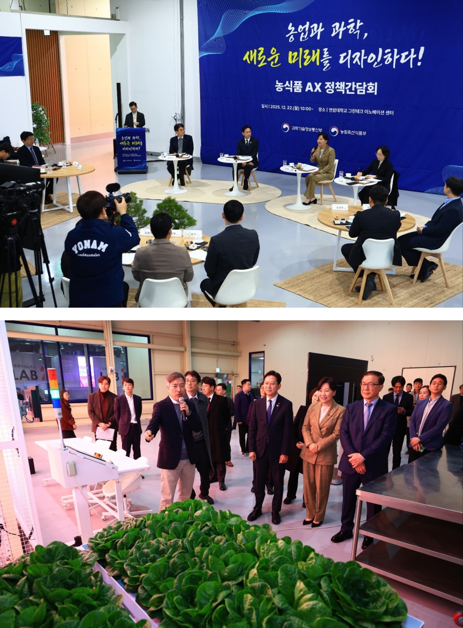 Áö³ 12¿ù 22ÀÏ, Ãæ³² õ¾È ¿¬¾Ï´ëÇб³ ±×¸°Å×Å©À̳뺣À̼Ǽ¾ÅÍ¿¡¼ ¹è°æÈÆ °úÇбâ¼úºÎÃѸ®¿Í ¼Û¹Ì·É ³ó¸²Ãà»ê½ÄǰºÎ Àå°üÀÌ °øµ¿À¸·Î ÁÖÀçÇÑ ¡®³ó½Äǰ ±â¼ú¡¤»ê¾÷ AX ÃËÁøÀ» À§ÇÑ Á¤Ã¥ °£´ãȸ¡¯°¡ ¿·È´Ù.
