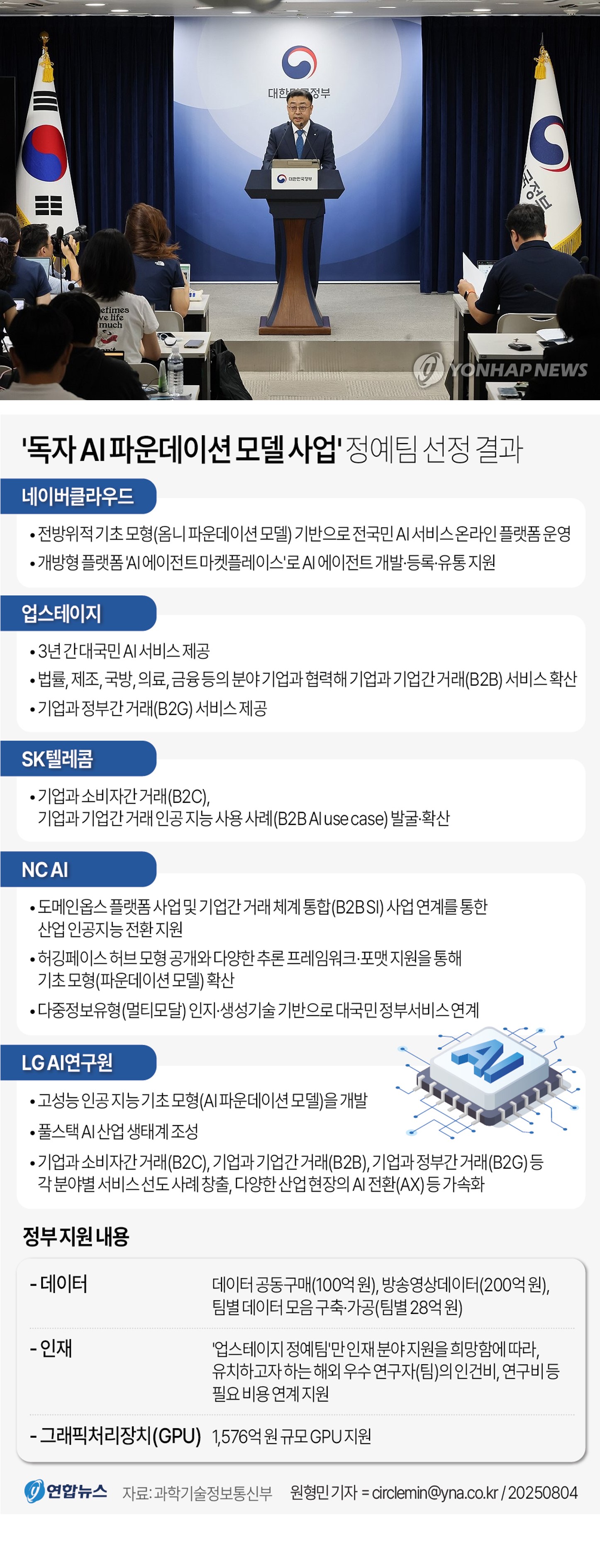 µ¶ÀÚ AI ÇÁ·ÎÁ§Æ® Âü¿© ±â¾÷À¸·Î ¼±Á¤µÈ ³×À̹öŬ¶ó¿ìµå, ¾÷½ºÅ×ÀÌÁö, SKÅÚ·¹ÄÞ[017670], NC AI, LG AI¿¬±¸¿øÀÌ Áغñ ÁßÀÎ AI ¸ðµ¨ÀÇ Æ¯Â¡Àº °¢°¢ ¹«¾ùÀϱî.