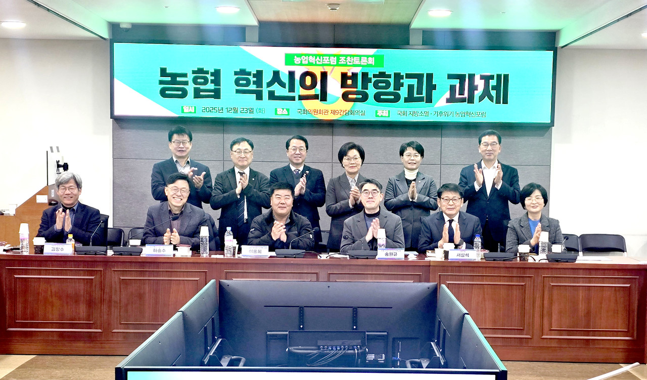 ±¹È¸ Áö¹æ¼Ò¸ê¡¤±âÈÄÀ§±â ³ó¾÷Çõ½ÅÆ÷·³(´ëÇ¥ ¼»ï¼®¡¤À§¼º°ï ÀÇ¿ø)Àº Áö³ 12¿ù 23ÀÏ ±¹È¸ ÀÇ¿øÈ¸°ü¿¡¼ ¡®³óÇù Çõ½ÅÀÇ ¹æÇâ°ú °úÁ¦¡¯¸¦ ÁÖÁ¦·Î Á¶ÂùÅä·Ðȸ¸¦ °³ÃÖÇß´Ù.