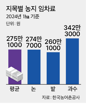 2024³â Àü±¹ ³óÁöÀÇ Æò±Õ ÀÓÂ÷·á°¡ 1§µ´ç 270¸¸¿ø ÀÌ»óÀ¸·Î Á¶»çµÆ´Ù. ³í¡¤¹çº¸´Ù´Â °ú¼ö¿øÀ» ºô¸®´Â µ¥ Å«µ·ÀÌ µå´Â °ÍÀ¸·Î ³ªÅ¸³µ´Ù.