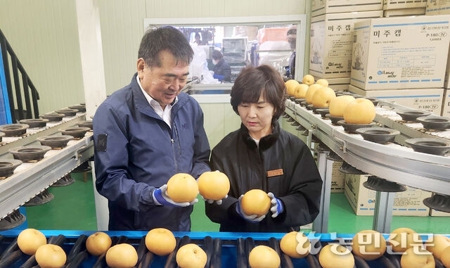* À̵¿Èñ Àü³² ³ªÁÖ¹è¿ø¿¹³óÇù Á¶ÇÕÀå(¿ÞÂÊ)ÀÌ ³óÇù ³ó»ê¹°»êÁöÀ¯Åë¼¾ÅÍ(APC)¿¡¼ ¼±º° ÁßÀÎ ¹èÀÇ Ç°ÁúÀ» »ìÆìº¸°í ÀÖ´Ù.
