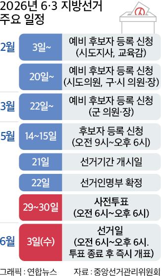 6¿ù3ÀÏ Á¦9ȸ Àü±¹µ¿½ÃÁö¹æ¼±°Å¿¡¼± Àü±¹ 17°³ ½Ãµµ ´ÜüÀåÀ» ºñ·ÔÇØ ½Ã¡¤±º¡¤±¸Ã»Àå, ±³À°°¨, Áö¹æÀÇȸ ÀÇ¿ø µî Ç®»Ñ¸® Áö¹æ±Ç·ÂÀ» ÇѲ¨¹ø¿¡ »Ì´Â´Ù. ±¤¿ªÀÇ¿ø°ú ±¸¡¤½Ã ÀÇ¿ø¡¤ÀåÀº ÀÌ´Þ 20ÀÏ, ±º ÀÇ¿ø¡¤ÀåÀº ´ÙÀ½´Þ 22ÀÏ ¿¹ºñÈĺ¸ÀÚ µî·ÏÀÌ ½ÃÀ۵ȴÙ. º»Èĺ¸ µî·ÏÀº 5¿ù14¡15ÀÏ ÀÌ·ïÁø´Ù.