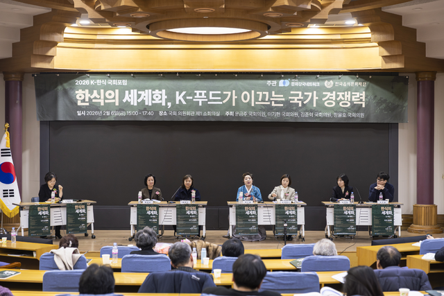 6ÀÏ ±¹È¸ ÀÇ¿øÈ¸°ü Á¦1¼ÒȸÀǽǿ¡¼± ¡®ÇѽÄÀÇ ¼¼°èÈ, ÄÉÀÌ(K)-Ǫµå°¡ À̲ô´Â ±¹°¡ °æÀï·Â¡¯ Åä·Ðȸ°¡ ¿·È´Ù. ´õºÒ¾î¹ÎÁÖ´ç ¹®±ÝÁÖ(Àü³² °íÈº¸¼º¡¤ÀåÈ°Áø)¡¤À̱âÇå(°æ±â °í¾çº´)¡¤±èÁØÇõ(°æ±â ¼ö¿øÁ¤)¡¤Á¤À»È£(ºñ·Ê´ëÇ¥) ÀÇ¿øÀÌ ÁÖÃÖÇÑ Çà»ç·Î, ¹®È°±¹³×Æ®¿öÅ©¡¤Çѱ¹À½½Ä¹®ÈÀç´ÜÀÌ ÁÖ°üÇß´Ù.
