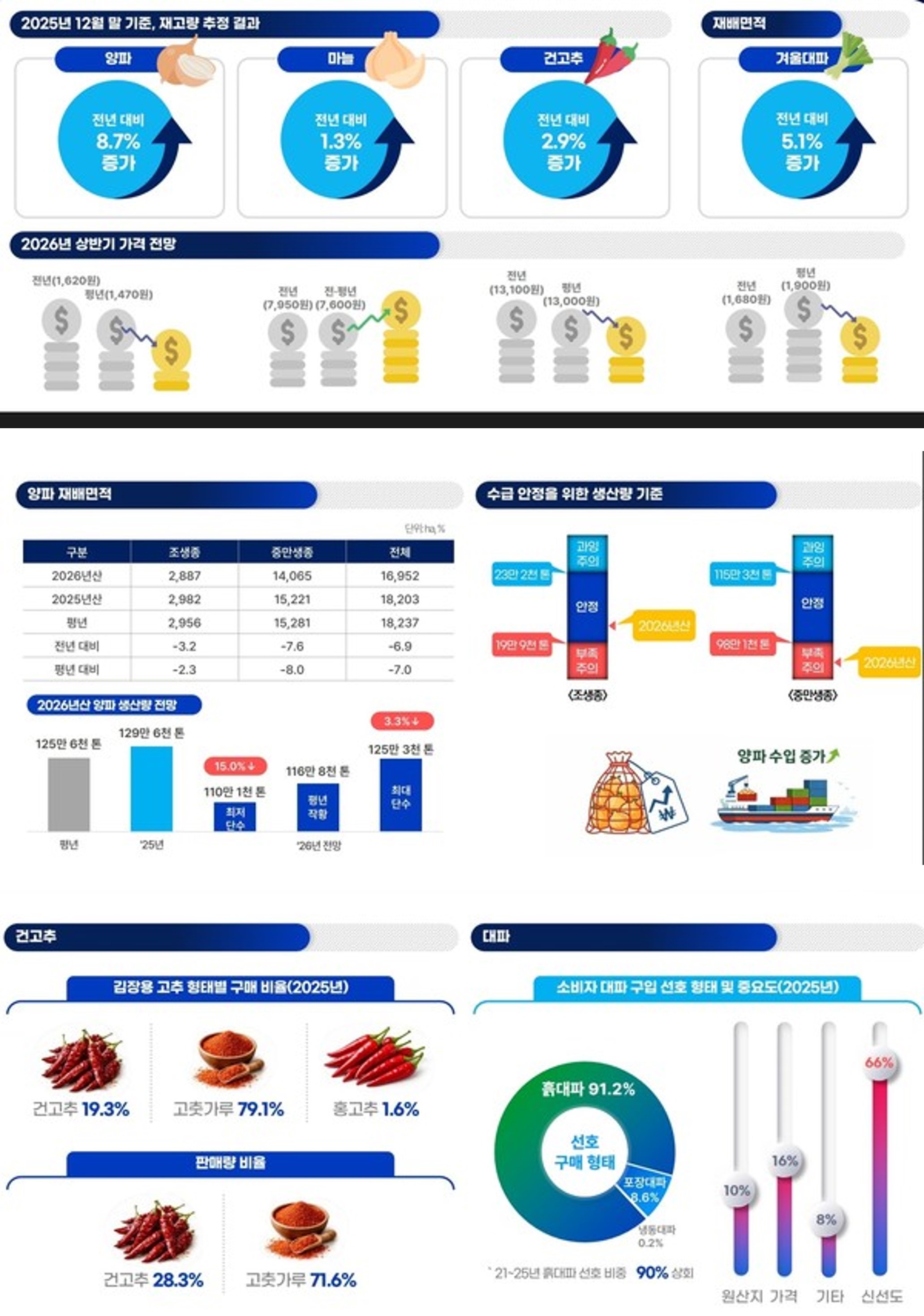 °Ç°íÃß¿Í ´ëÆÄ´Â ¼ÒºñÀÚÀÇ ±¸¸Å ÇàÅ º¯È°¡ »ý»ê ±¸Á¶¿¡ Á÷Á¢ÀûÀÎ ¿µÇâÀ» ¹ÌÄ¡°í ÀÖ´Ù. °Ç°íÃß Àç¹è¸éÀûÀº 2010³â 4¸¸ 5000ha¿¡¼ 2025³â 2¸¸ 6000ha·Î ¹ÝÅ丷 ³µ´Ù. 2026³â Àç¹èÀÇÇâ ¸éÀûÀº Àü³âº¸´Ù 2.8% °¨¼ÒÇÑ 2¸¸ 5014ha¿¡ ±×Ä¥ Àü¸ÁÀÌ´Ù. ÀÌ´Â ¼ÒºñÀÚµéÀÌ °Ç°íÃß ¿ø¹°º¸´Ù °¡°øµÈ °íÃå°¡·ç¸¦ ¼±È£Çϱ⠶§¹®À¸·Î Ç®À̵ȴÙ. ½ÇÁ¦ 2025³â ±èÀå¿ë °íÃß ±¸¸Å ÇüÅ Á¶»ç¿¡¼ °íÃå°¡·ç ¼±È£µµ´Â 79.1%¿¡ À̸¥ ¹Ý¸é, °Ç°íÃß´Â 19.3%¿¡ ºÒ°úÇß´Ù.