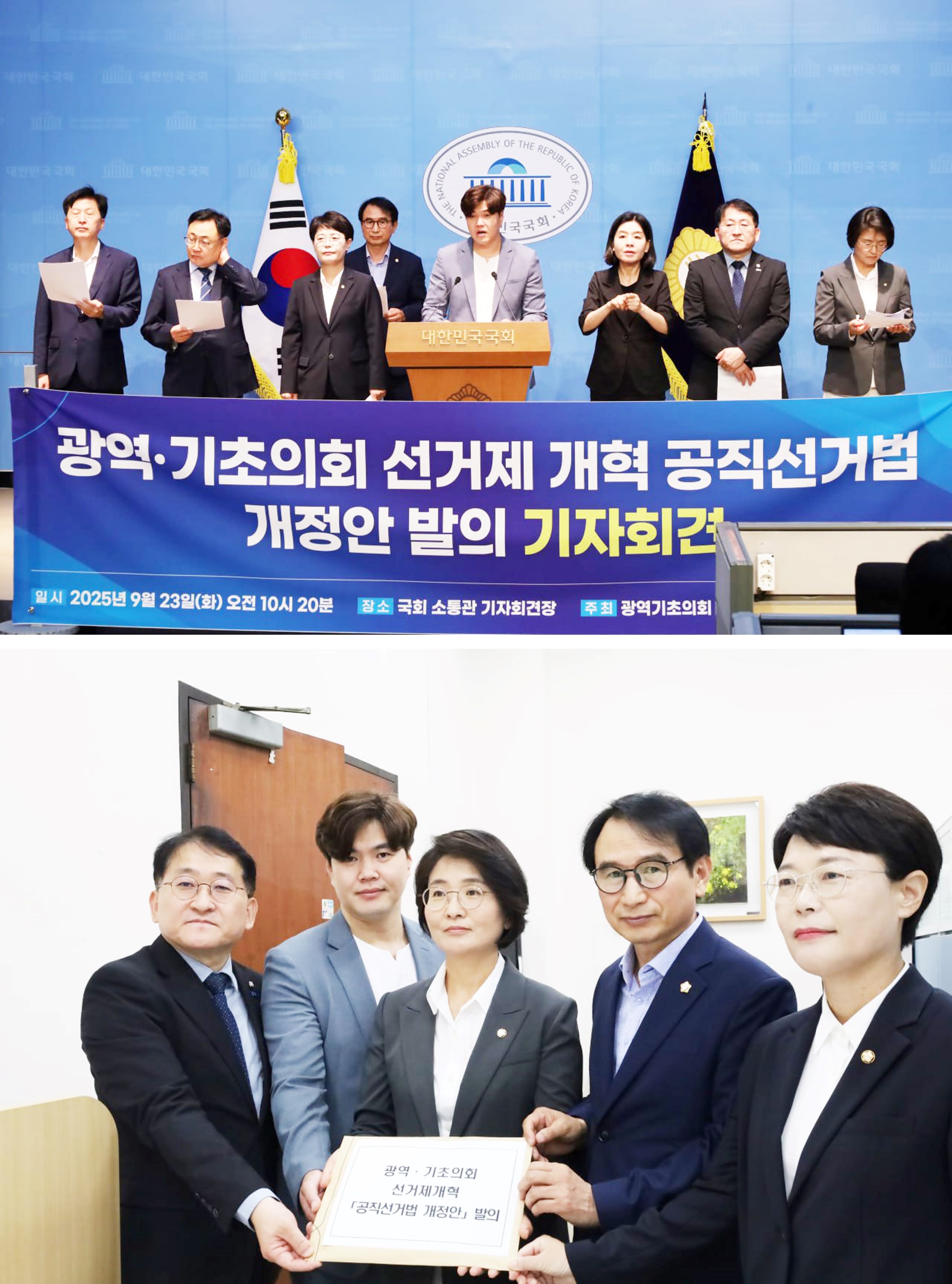 °³Á¤¾ÈÀ» ´ëÇ¥ ¹ßÀÇÇÑ ÀÓ¹Ì¾Ö ´õºÒ¾î¹ÎÁÖ´ç(ºñ·Ê) ÀÇ¿øÀº ±¤¿ª¡¤±âÃÊÀÇȸ ¼±°ÅÁ¦ °³Çõ ½Ã¹ü»ç¾÷´Ü È®´ë ÃßÁø´Ü ¼Ò¼Ó ±¹È¸ÀÇ¿ø ¹× ±âÃÊÀÇ¿øµé°ú ÇÔ²² 23ÀÏ ±¹È¸ ¼ÒÅë°ü¿¡¼ ±âÀÚȸ°ßÀ» ¿°í, ¡®±¤¿ª¡¤±âÃÊÀÇȸ ¼±°ÅÁ¦ °³Çõ °øÁ÷¼±°Å¹ý °³Á¤¾È ¹ßÀÇ¡¯¸¦ °ø½Ä ¹ßÇ¥Çß´Ù.