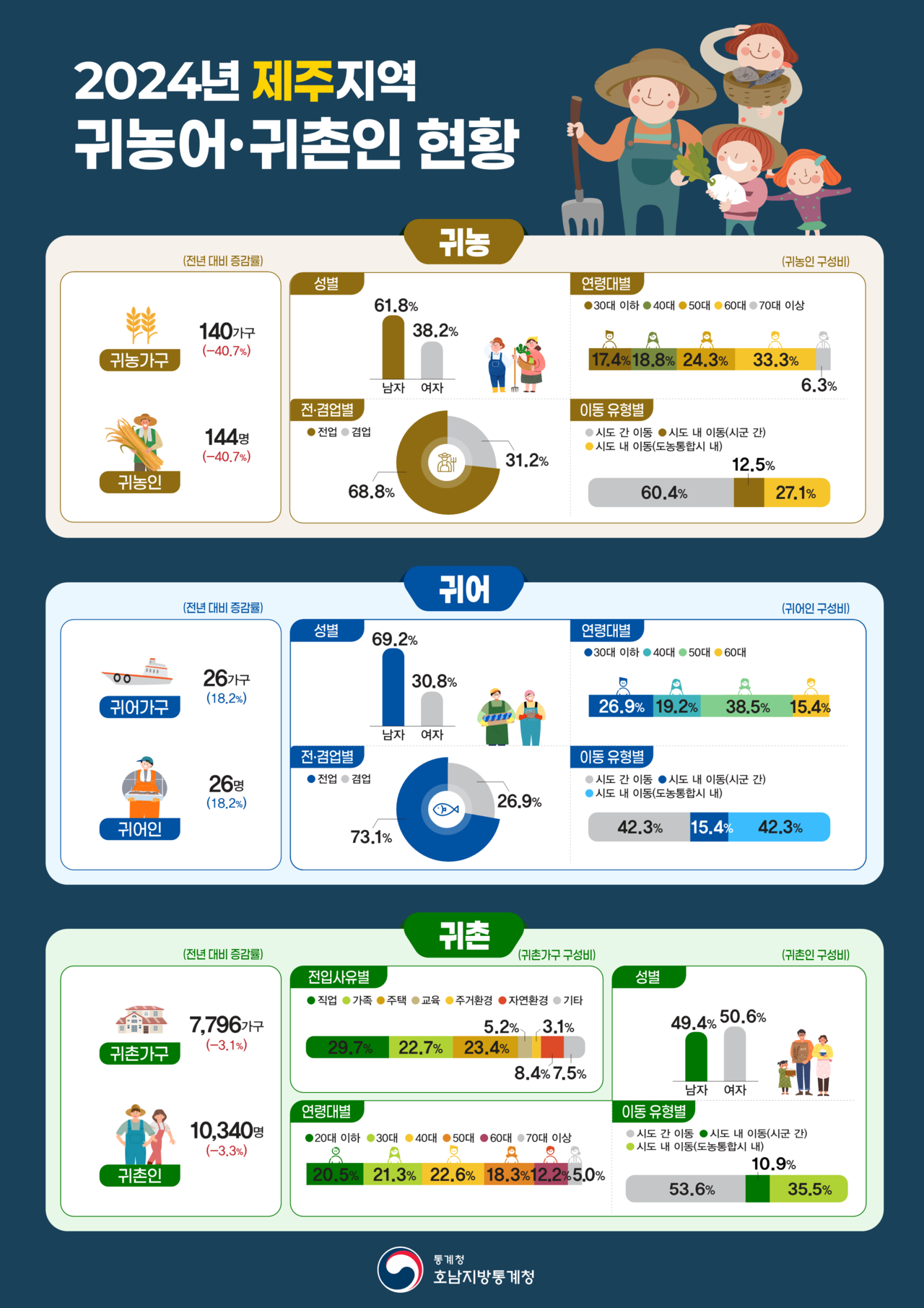È£³²Áö¹æÅë°èûÀÌ ¹ßÇ¥ÇÑ ¡®2024³â ÀüºÏ¡¤Àü³²¡¤Á¦ÁÖÁö¿ª ±Í³ó¾î¡¤±ÍÃÌÀÎ ÇöȲ¡¯¿¡ µû¸£¸é Áö³ÇØ Á¦ÁÖÁö¿ª ±Í³ó°¡±¸¿Í ±Í³óÀÎÀº 140°¡±¸¡¤144¸íÀ¸·Î Àü³â´ëºñ °¢°¢ 40.7% °¨¼ÒÇß´Ù.