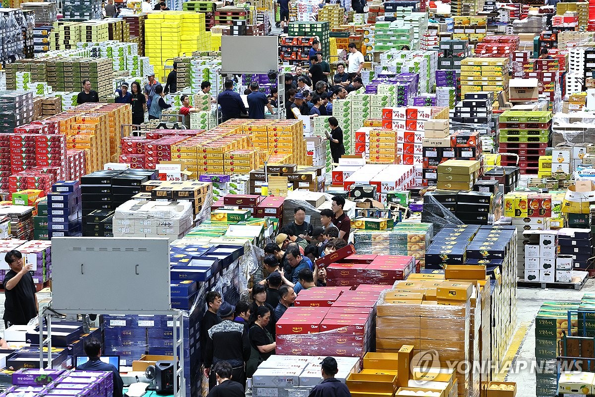 (ÀÎõ=¿¬ÇÕ´º½º) ÀÓ¼ø¼® ±âÀÚ = Ãß¼® ¸íÀýÀ» 10¿©ÀÏ ¾ÕµÐ 24ÀÏ »õº® ÀÎõ ³²µ¿±¸ ³²Ã̳ó»ê¹°µµ¸Å½ÃÀå¿¡¼ °úÀÏ °æ¸Å°¡ ÁøÇàµÇ°í ÀÖ´Ù. 2025.9.24