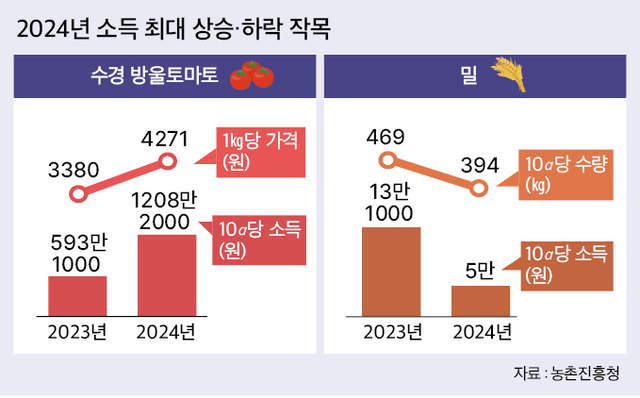 2023³âº¸´Ù ¼ÒµæÀÌ 20% ÀÌ»ó Áõ°¡ÇÑ ÀÛ¸ñÀº ¼ö°æ ¹æ¿ïÅ丶Å並 Æ÷ÇÔÇØ 11°³¿´´Ù. °¡À»¹èÃß(72%), ½Ã¼³½Ã±ÝÄ¡(70%), Åä°æ ¹æ¿ïÅ丶Åä(69%), ´ç±Ù(54%) ¼øÀÌ´Ù. ¹Ý´ë·Î ¼ÒµæÀÌ 20% ÀÌ»ó °¨¼ÒÇÑ ÀÛ¸ñÀº ¹ÐÀ» Æ÷ÇÔÇØ 7°³´Ù. Àλï(4³â±Ù¡¤35%)¡¤°¡À»°¨ÀÚ(33%)¡¤½Ã¼³Æ÷µµ(23%)¡¤º½¹èÃß(22%)¡¤°Ñº¸¸®(22%)¡¤»ý°(21%) ¼øÀÌ´Ù.