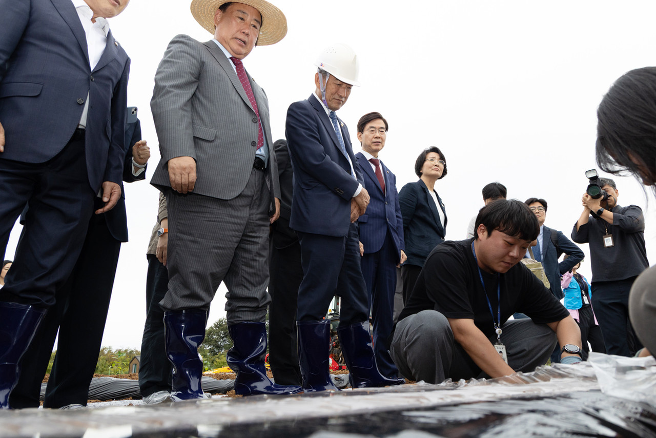 * ¾î±â±¸ ±¹È¸ ³óÇØ¼öÀ§ À§¿øÀå(»çÁø ¿ÞÂÊ µÎ ¹øÂ°)À» Æ÷ÇÔÇÑ À§¿øµéÀÌ ³óÃÌÁøÈïûÀÇ ¹ç³ó¾÷ ±â°èÈ­ ÇöÀåÀ» ½ÃÂûÇϰí ÀÖ´Ù. »çÁøÁ¦°ø=³óÃÌÁøÈïû