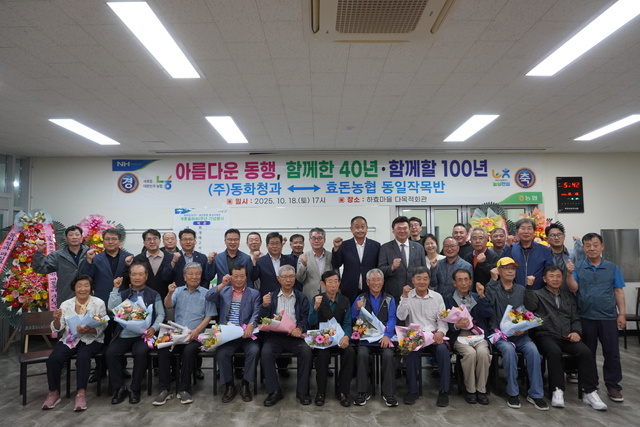 * 18ÀÏ Á¦ÁÖ ¼±ÍÆ÷½Ã ÇÏÈ¿¸¶À»´Ù¸ñÀûȸ°ü¿¡¼ ¿¸° ¡®µ¿Èû°ú-È¿µ·³óÇù µ¿ÀÏÀÛ¸ñ¹Ý °èÅëÃâÇÏ 40Áֳ⠱â³äÇà»ç¡¯¿¡¼ µ¿Èû°ú¡¤È¿µ·³óÇù °ü°èÀÚ, °¨±Ö³ó°¡µéÀÌ 40³â°£ À̾î¿Â »ó»ýÀÇ ¿©Á¤À» ÃàÇÏÇϰí ÀÖ´Ù. µ¿Èû°ú