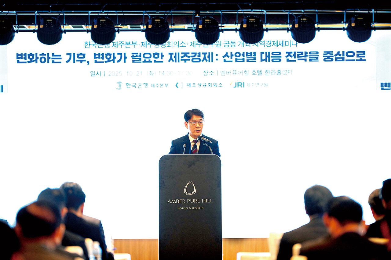 Çѱ¹ÀºÇà Á¦ÁÖº»ºÎ(º»ºÎÀå ¹Ú±¸µµ)¡¤Á¦ÁÖ»ó°øÈ¸ÀǼÒ(ȸÀå ¾ç¹®¼®)¡¤Á¦ÁÖ¿¬±¸¿ø(¿øÀå À¯¿µºÀ)Àº Áö³ 21ÀÏ ±âÈĺ¯È°¡ Á¦ÁÖ°æÁ¦¿¡ ¹ÌÄ¡´Â ¿µÇâÀ» ¤¾îº¸°í ±âÈĺ¯È¿¡ ´ëÇÑ »ê¾÷º° ÁßÀå±âÀû ´ëÀÀ Àü·« ¸¶·ÃÀ» À§ÇØ ¡®º¯ÈÇÏ´Â ±âÈÄ, º¯È°¡ ÇÊ¿äÇÑ Á¦ÁÖ°æÁ¦:»ê¾÷º° ´ëÀÀÀü·«À» Áß½ÉÀ¸·Î¡¯ ¼¼¹Ì³ª¸¦ °³ÃÖÇß´Ù.