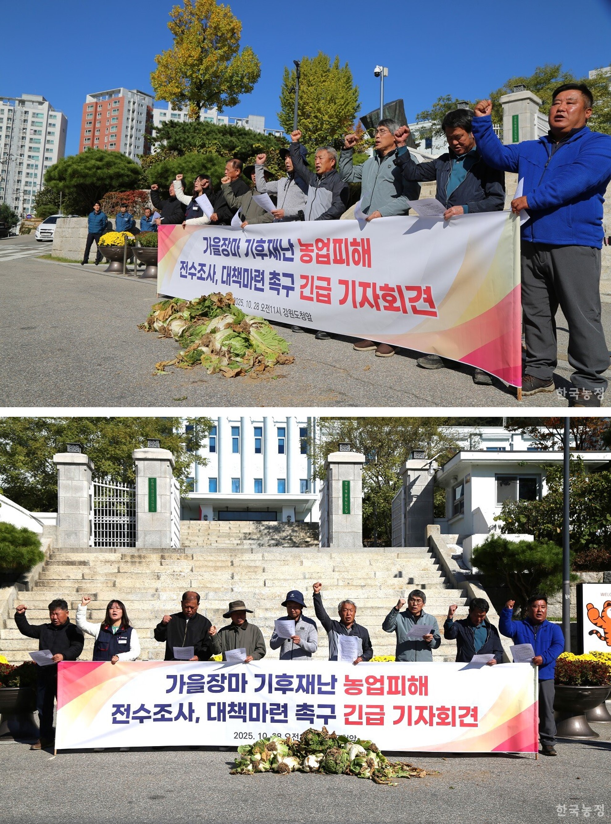 * Àü±¹³ó¹ÎȸÃÑ¿¬¸Í °­¿øµµ¿¬¸Í ¼Ò¼Ó ³ó¹ÎµéÀÌ 28ÀÏ °­¿øµµÃ» ¾Õ¿¡¼­ °¡À»À帶·Î ÀÎÇÑ °­¿øµµ ¹çÀÛ¹° ÀçÇØ ´ëÃ¥À» Ã˱¸Çϰí ÀÖ´Ù.