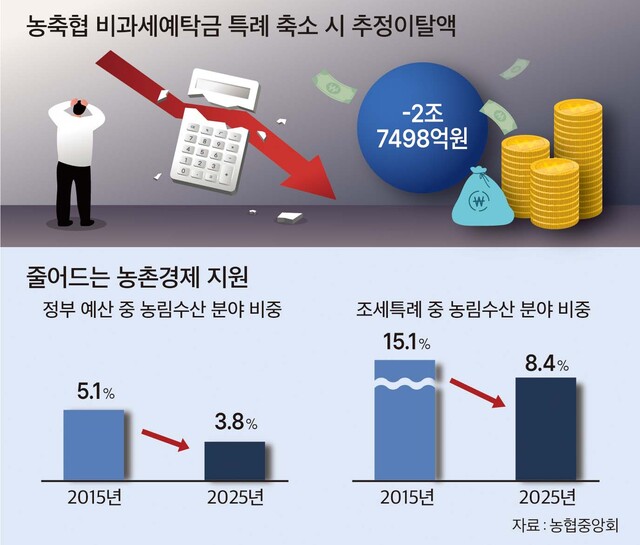 Á¤ºÎ°¡ ¡®2025³â ¼¼Á¦°³Æí¾È¡¯¿¡ ´ãÀº ¡®3000¸¸¿ø ÀÌÇÏ ³óÃàÇù (ÁØ)Á¶ÇÕ¿ø ¿¹Å¹±Ý ¼Òµæ ±âÁØ µµÀÔ(Ãѱ޿©¾× 5000¸¸¿ø)¡¯ÀÌ Çö½ÇÈµÇ¸é ³óÃàÇù¿¡¼ ºüÁ®³ª°¥ ¿¹±Ý¾×¸¸ ¾à 3Á¶¿ø¿¡ ´ÞÇÒ Àü¸ÁÀÌ´Ù. Ư·Ê Ãà¼Ò·Î ¿¹±ÝÀ» »©°Ú´Ù´Â ½É¸®°¡ Ä¿Áö°í, ¹°°¡¿Í ÀÓ±Ý »ó½ÂÀ¸·Î ¼Òµæ±âÁØÀ» ÃʰúÇÏ´Â ÁØÁ¶ÇÕ¿øÀÌ ´Ã¸é ÀÌÅ»¾×Àº °¥¼ö·Ï Ä¿Áú ¼ö¹Û¿¡ ¾ø´Ù. Á¤ºÎ´Â °ú¼¼Ç¥ÁØÀÌ 20¾ï¿øÀ» ÃʰúÇÏ´Â ³óÃàÇù¿¡´Â ¹ýÀμ¼À²À» 3%Æ÷ÀÎÆ® ³ôÀδٴ ¹æÄ§ÀÌ´Ù. ÀÏ¹Ý ¹ýÀÎÀÇ ¼¼À²Àº ¼Õ´ëÁö ¾Ê¾Ò´Ù.