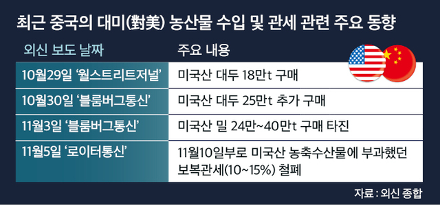 µµ³Îµå Æ®·³ÇÁ ¹Ì±¹ ´ëÅë·É°ú ½ÃÁøÇÎ Áß±¹ ±¹°¡ÁÖ¼®ÀÇ Á¤»óȸ´ã ÀÌÈÄ, Áß±¹ÀÌ ¹Ì±¹»ê ³ó»ê¹° ¼öÀÔÀ» ÀÕ´Þ¾Æ Àç°³ÇÏ¸ç µÎ ³ª¶ó°£ ¡®¹«¿ª ÈÞÀü¡¯ ºÐÀ§±â°¡ È®»êÇϰí ÀÖ´Ù. ƯÈ÷ Áß±¹Àº ¹Ì±¹»ê ´ëµÎ¿¡ ÀÌ¾î ¹Ð¿¡ ´ëÇØ¼µµ ¼öÀÔ Àç°³¸¦ °ËÅäÇÏ´Â °ÍÀ¸·Î ¾Ë·ÁÁö¸é¼ ¼¼°è °î¹° Àü¹®°¡µéÀÇ À̸ñÀÌ ÁýÁߵǰí ÀÖ´Ù. ¾Õ¼ ±¹³» ³ó¾÷°è¿¡¼± °¥ °÷ ÀÒÀº ¹Ì±¹»ê ´ëµÎ°¡ Çѱ¹À¸·Î Èê·¯µé¾î¿À´Â °Í ¾Æ´Ï³Ä´Â ¿ì·Á°¡ Á¦±âµÈ ¹Ù ÀÖ´Ù(º»Áö 10¿ù22ÀÏÀÚ 9¸é µî º¸µµ).