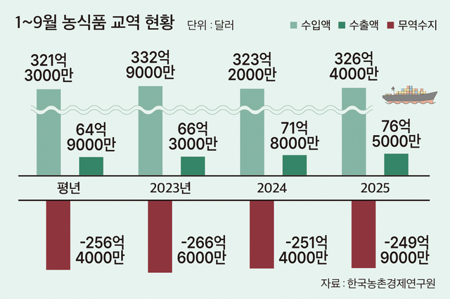 ¼öÃâ¾×Àº Áõ°¡¼¼Áö¸¸ ¹«¿ª¼öÁö´Â ¿ÀÈ÷·Á ³ªºüÁ³´Ù. Çѱ¹³óÃ̰æÁ¦¿¬±¸¿øÀÌ ¹ß°£ÇÑ ¡®ÀÚÀ¯¹«¿ªÇùÁ¤(FTA) ü°á±¹ ³óÃà»ê¹° ¼öÃâÀÔ µ¿Ç⡯¿¡ µû¸£¸é ¿Ã 1¡9¿ù ¹«¿ª¼öÁö´Â 249¾ï9000¸¸´Þ·¯ ÀûÀÚ·Î Áý°èµÆ´Ù. ǰ¸ñº°·Î´Â ±¹»ê °¡°ÝÀÌ ¿À¸£¸é¼ È£ÁÖ»ê ¹°·®ÀÌ Å©°Ô ¶Ú ¼è°í±â ¼öÀÔ¾×ÀÌ Àü³â µ¿±â ´ëºñ 8.0% ´Ã¸é¼ ¼öÀÔ Áõ°¡¸¦ °ßÀÎÇß´Ù. Àú·ÅÇÑ Áß±¹»êÀÌ ´ë°Å µé¾î¿Â ¾çÆÄ´Â °°Àº ±â°£ ¼öÀÔ¾×ÀÌ 62.9% ±ÞµîÇß´Ù. Æ÷µµ¡¤¿À·»Áö¡¤Ã¼¸® µîµµ Àüº¸´Ù ¸¹ÀÌ ¼öÀԵƴÙ. ³ó°æ¿¬Àº ¡°°¡°Ý °æÀï·ÂÀ» ¾Õ¼¼¿î ¼öÀÔ ³ó»ê¹°ÀÌ °í¹°°¡ÀÇ ±¹»ê ¸Ô°Å¸®¸¦ ´ëüÇϰí ÀÖ´Ù¡±°í ºÐ¼®Çß´Ù.