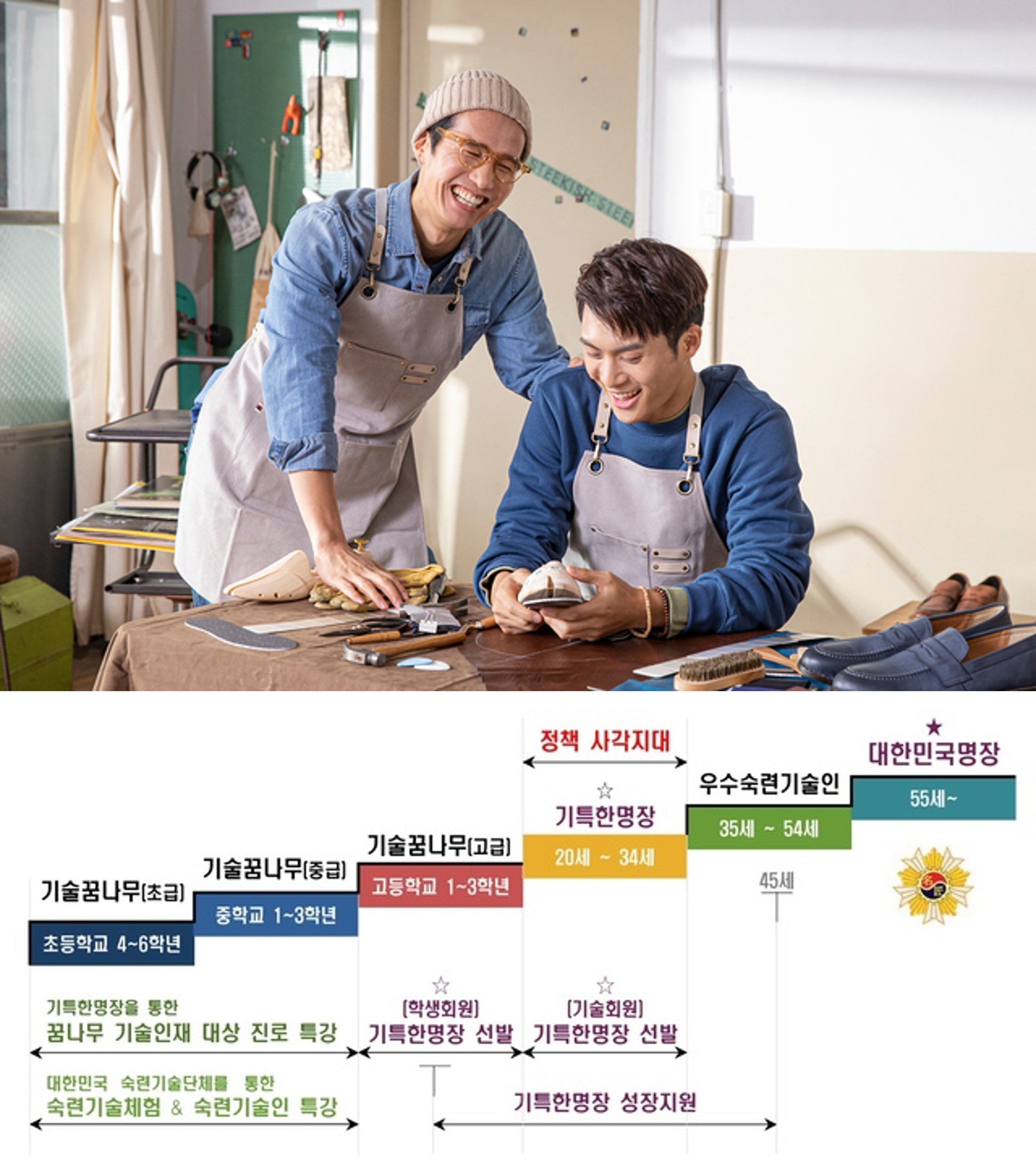 Á¤ºÎ°¡ û³â ±â¼úÀÎÀ縦 Á¶±â¿¡ ¹ß±¼ÇØ ¼÷·Ã±â¼ú Àü¹®°¡·Î Ű¿ì´Â ¡®±âƯÇѸíÀ塯 Á¦µµ¸¦ »õ·Î ¸¸µç´Ù. 50´ë Áß¡¤ÈĹݿ¡ ÁýÁßµÈ ´ëÇѹα¹¸íÀå Á¦µµÀÇ ¼¼´ë ±³Ã¼¸¦ ¾Õ´ç±â°í, û³âÃþ¿¡°Ô ¸íÀåÀ¸·Î ¼ºÀåÇÒ ¼ö ÀÖ´Â ¹ßÆÇÀ» ¸¶·ÃÇϰڴٴ ÃëÁö´Ù.