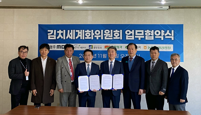 Çѱ¹³ó¼ö»ê¹°µµ¸Å½ÃÀå¹ýÀÎÇùȸ °¡¶ô½ÃÀåÁöȸ(ÁöȸÀå ÀÌ»ó¿ë¡¤´ë¾ÆÃ»°ú ´ëÇ¥)¿Í ³óÇù°¡¶ô°øÆÇÀåÀº 22ÀÏ ±¤ÁÖ±¤¿ª½Ã ³²±¸¿¡ ÀÖ´Â ±¤ÁÖ¹®È¹æ¼Û(±¤ÁÖMBC)À» ã¾Æ ¡®±èÄ¡¼¼°èÈÆ÷·³¡¯À» °øµ¿ ÃßÁøÇϱâ À§ÇØ ¾÷¹«Çù¾àÀ» ü°áÇß´Ù. ³ó¼ö»ê¹°µµ¸Å½ÃÀå¹ýÀÎÇùȸ °¡¶ô½ÃÀåÁöȸ¿£ ¼¿ï °¡¶ô½ÃÀå ³» ¼¿ïû°ú¡¤Áß¾Óû°ú¡¤µ¿Èû°ú¡¤´ë¾ÆÃ»°ú 4°÷ÀÌ °¡ÀԵŠÀÖ´Ù.
