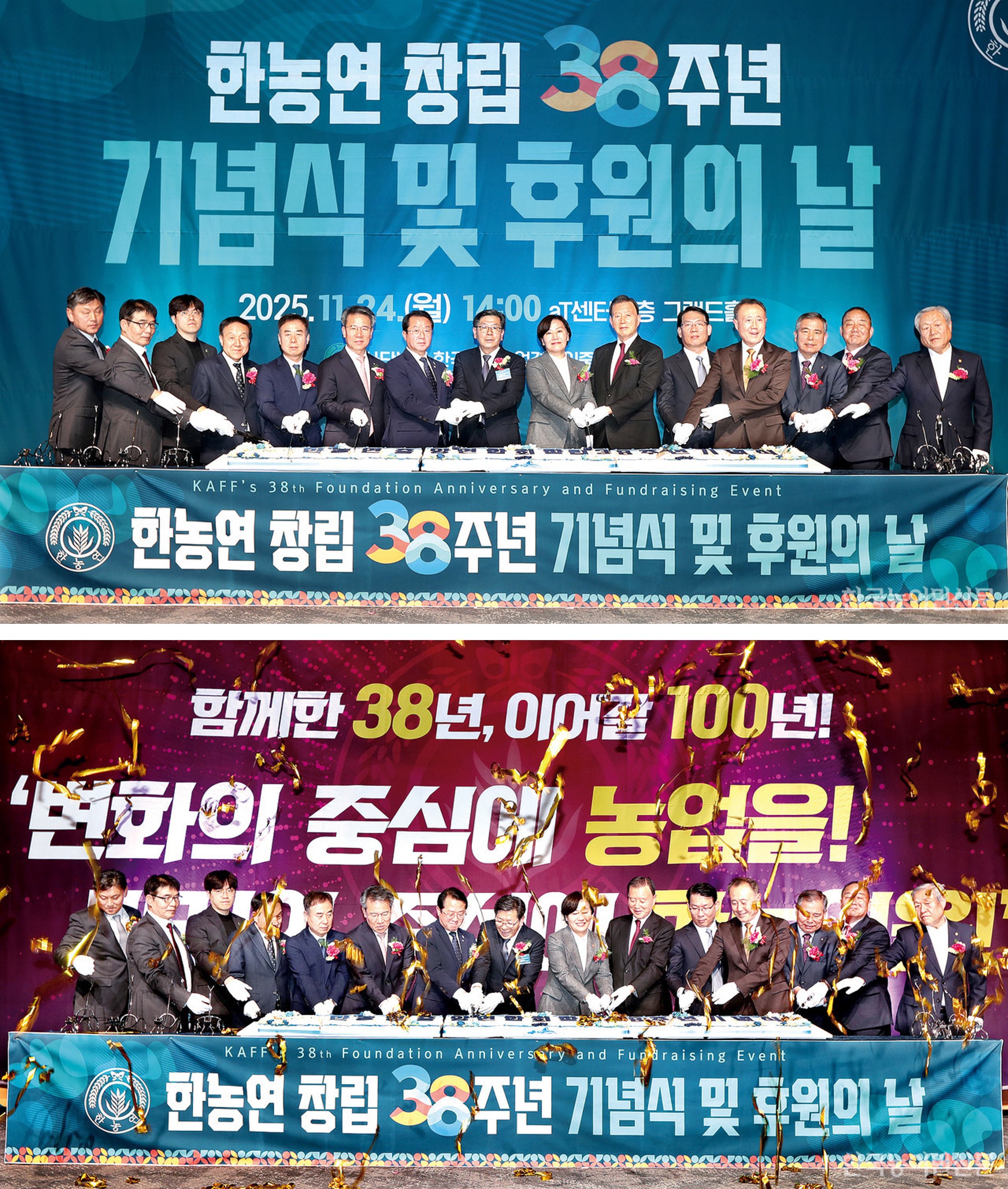 * Çѱ¹Èİè³ó¾÷°æ¿µÀÎÁß¾Ó¿¬ÇÕȸ ⸳ 38ÁÖ³â ¹× ÈÄ¿øÀÇ ³¯ Çà»ç°¡ Áö³ 24ÀÏ ¼¿ï ¾çÀ絿 aT¼¾ÅÍ¿¡¼ °³ÃֵƴÙ. ¼Û¹Ì·É ³ó¸²Ãà»ê½ÄǰºÎ Àå°ü, ¹®±ÝÁÖ ´õºÒ¾î¹ÎÁÖ´ç ÀÇ¿ø, ±èÀÎÁß Çѱ¹³ó¾îÃ̰ø»ç »çÀå, È«¹®Ç¥ Çѱ¹³ó¼ö»ê½ÄǰÀ¯Åë°ø»ç »çÀå, ¹Ú¼È« ³óÇù ³ó¾÷°æÁ¦´ëÇ¥ µîÀÌ ÃÖÈï½Ä ÇÑ³ó¿¬ È¸Àå°ú ÇÔ²² ÃàÇÏ ¶±À» ÀÚ¸£°í ÀÖ´Ù. ±èÈïÁø ±âÀÚ