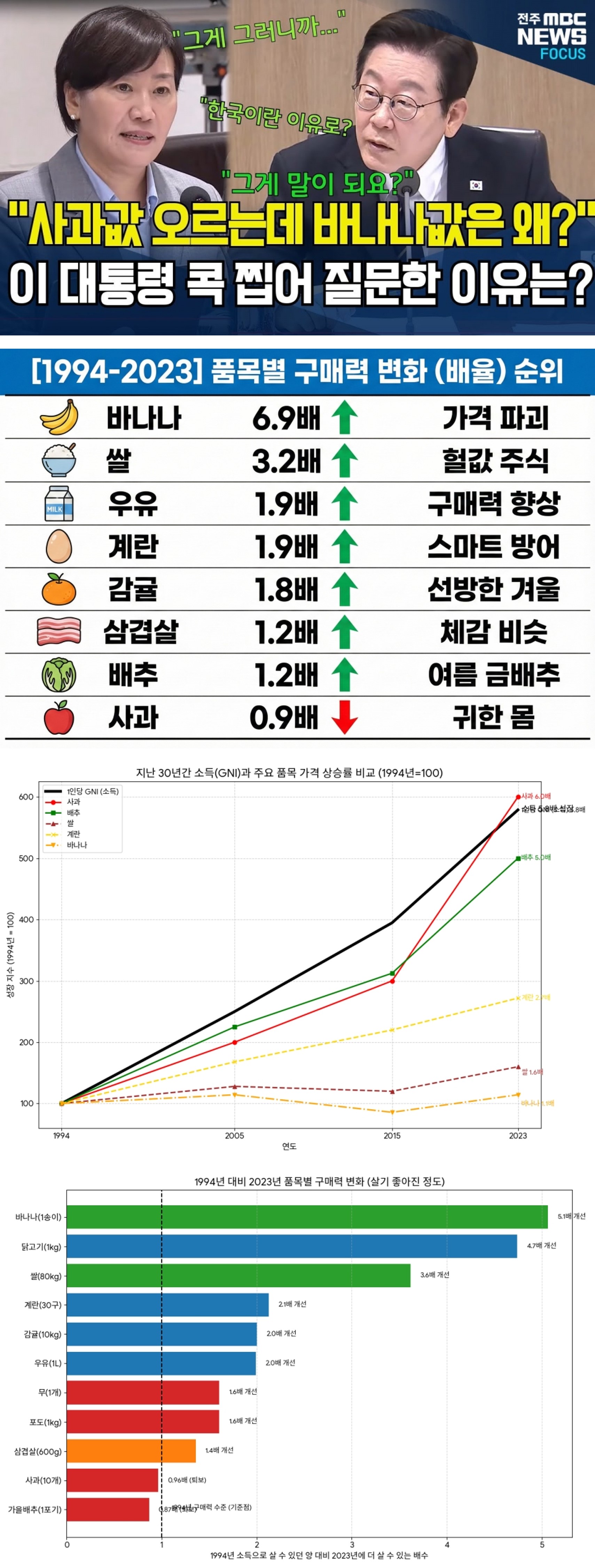 À§ ±×·¡ÇÁ´Â 30³â ÀüÀÎ 1994³â°ú ºñ±³ÇßÀ» ¶§, ¿ì¸®ÀÇ ¼Òµæ°ú ¹°°¡°¡ °¢°¢ ¾ó¸¶³ª ¿Ã¶ú´ÂÁö¸¦ ÇÑ´«¿¡ º¸¿©ÁØ´Ù.