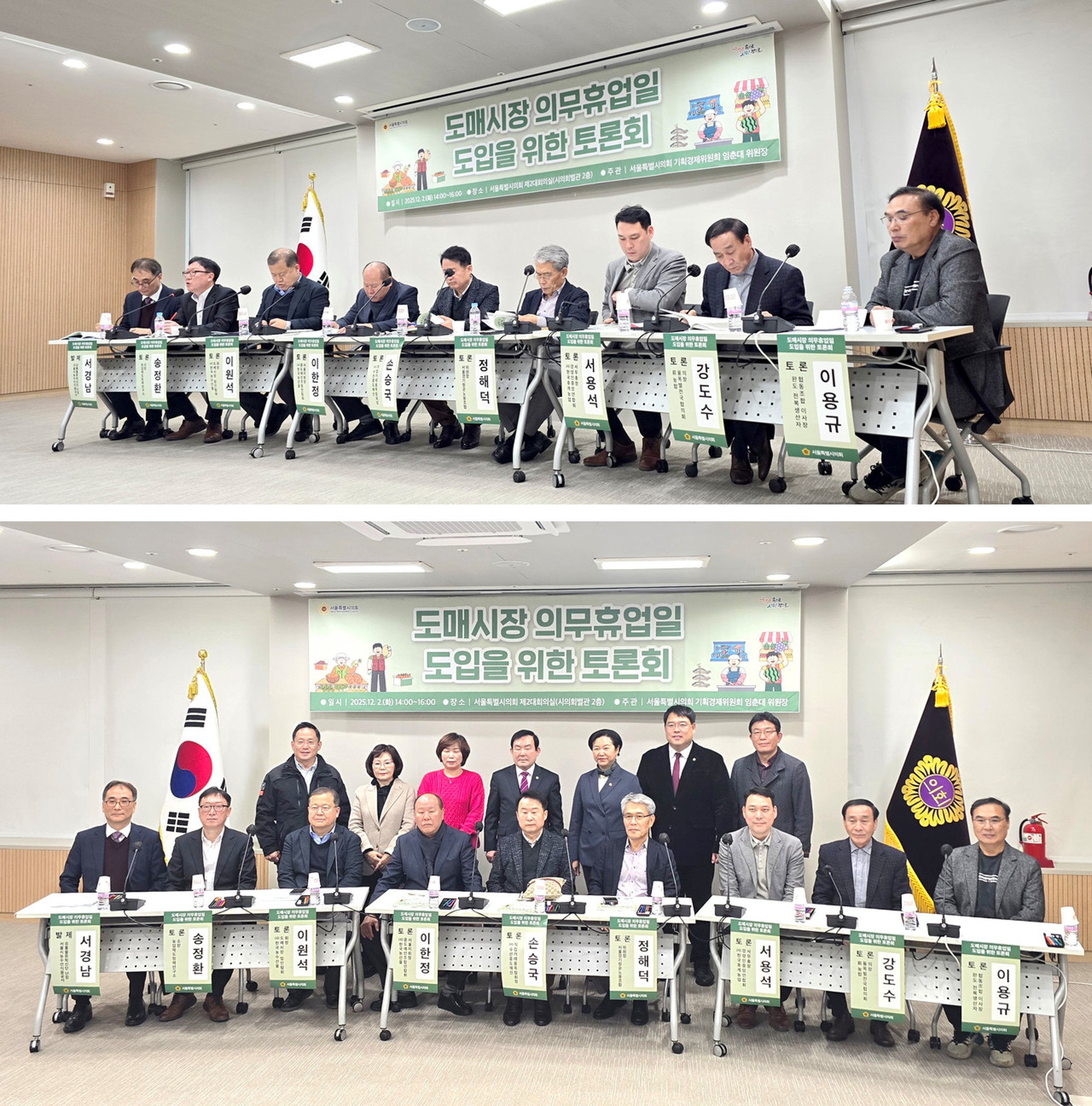 ¼¿ï½ÃÀÇȸ ÁÖÃÖ, ÀÓÃá´ë ¼¿ï½ÃÀÇ¿ø ÁÖ°üÀ¸·Î 12¿ù 2ÀÏ ¼¿ï½ÃÀÇȸº°°ü 2µ¿¿¡¼ ¡®µµ¸Å½ÃÀå Àǹ«ÈÞ¾÷ÀÏ µµÀÔÀ» À§ÇÑ Åä·Ðȸ¡¯°¡ °³ÃֵƴÙ. À̹ø Åä·Ðȸ´Â ÀÓÃá´ë ÀÇ¿øÀÌ ¼¿ï½Ã °üÇÒ µµ¸Å½ÃÀå¿¡ ¸Å´Þ ºñÁ¤±âÈÞ¾÷ÀÏ 1ÀÏÀ» µµÀÔÇÏ´Â °ÍÀ» °ñÀÚ·Î ÇÏ´Â ¡®¼¿ïƯº°½Ã ³ó¼ö»ê¹°µµ¸Å½ÃÀå Á¶·Ê ÀϺΰ³Á¤Á¶·Ê¾È¡¯À» ¹ßÀÇÇÑ °Í°ú °ü·ÃÇØ ÀǰßÀ» ¼ö·ÅÇϰíÀÚ ¸¶·ÃµÆ´Ù.