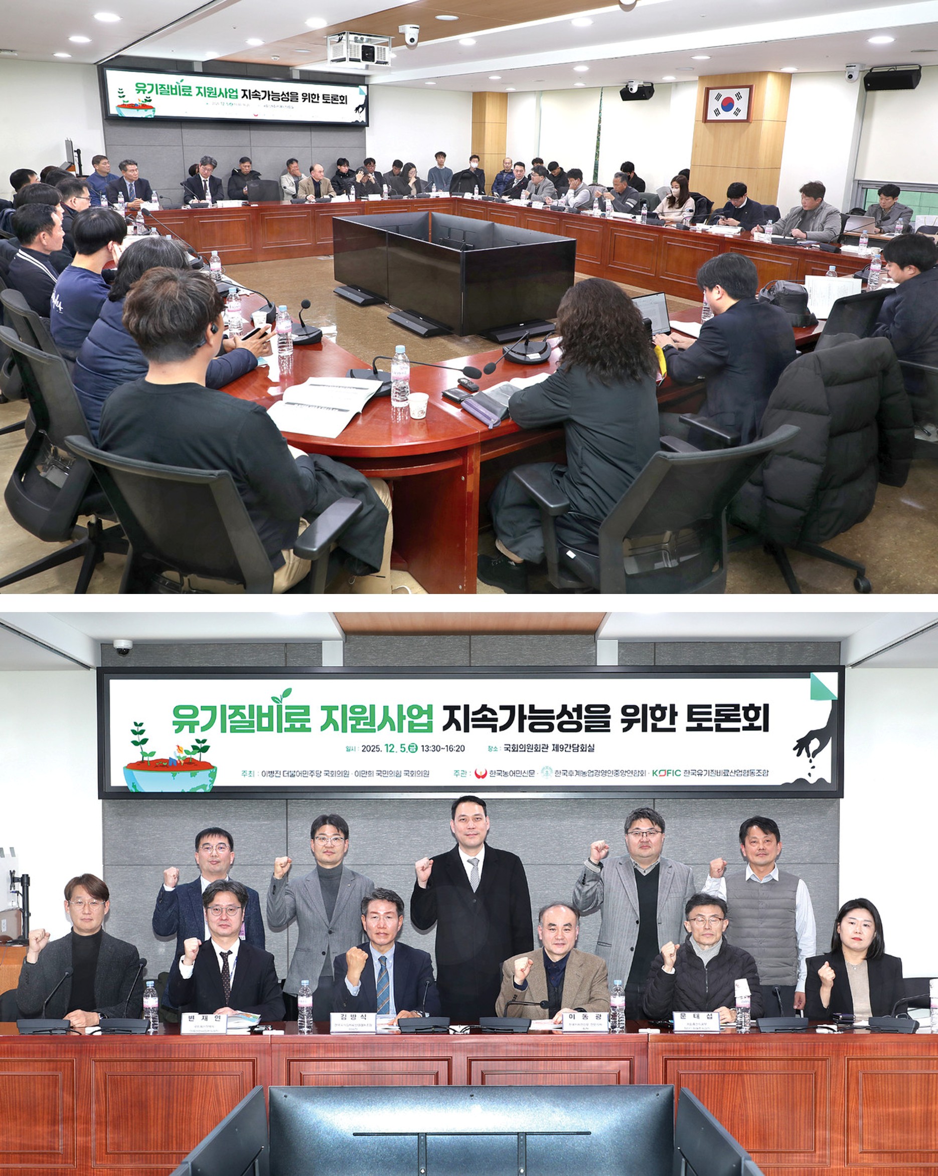 À̺´Áø ´õºÒ¾î¹ÎÁÖ´ç(ÆòÅÃÀ») ÀÇ¿ø¡¤À̸¸Èñ ±¹¹ÎÀÇÈû(¿µÃµ¡¤Ã»µµ) ÀÇ¿ø(ÁÖÃÖ)°ú Çѱ¹³ó¾î¹Î½Å¹®¡¤Çѱ¹Èİè³ó¾÷°æ¿µÀÎÁß¾Ó¿¬ÇÕȸ¡¤Çѱ¹À¯±âÁúºñ·á»ê¾÷Çùµ¿Á¶ÇÕ(ÁÖ°ü)Àº Áö³ 12¿ù 5ÀÏ ±¹È¸ÀÇ¿øÈ¸°ü Á¦9°£´ãȸ½Ç¿¡¼ ¡®À¯±âÁúºñ·á Áö¿ø»ç¾÷ Áö¼Ó°¡´É¼ºÀ» À§ÇÑ Åä·Ðȸ¡¯¸¦ °³ÃÖÇß´Ù. À̹ø Åä·Ðȸ´Â À¯±âÁúºñ·á Áö¿ø»ç¾÷ ¿¹»ê °¨ÃàÀÇ ¿ì·Á¸¦ ½Ç¼ö¿äÀÚÀÎ ³ó¾÷Àο¡°Ô ¾Ë¸®´Â °¡¿îµ¥ À¯±âÁúºñ·á Áö¿ø»ç¾÷ÀÇ È¿°ú¸¦ Á¦°íÇÒ ¼ö ÀÖ´Â ´ë¾ÈÀ» ¸ð»öÇϱâ À§ÇØ ¸¶·ÃµÆ´Ù.