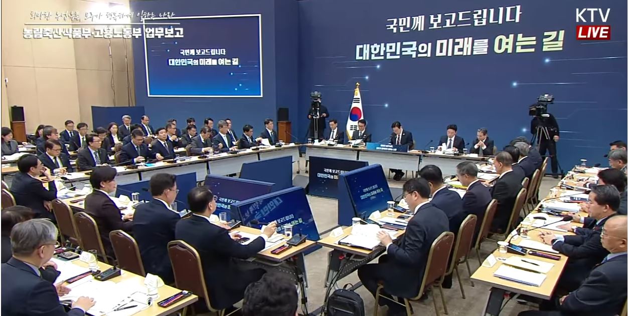 ÇÑÆí ³ó½ÄǰºÎ´Â À̳¯ ¾÷¹«º¸°í¿¡¼ ¡â±¹¹Î ¸Ô°Å¸®¸¦ ÁöŰ´Â ±¹°¡Àü·«»ê¾÷À¸·Î ³ó¾÷ À°¼º ¡â¡®K-Ǫµå+¡¯ ±Û·Î¹ú ÁøÃâ È®´ë ¹× ³ó¾÷³óÃÌÀÇ ½º¸¶Æ®È ¡â±¹°¡ Ã¥ÀÓÀ» °ÈÇÏ´Â ³óÁ¤ ´ëÀüȯ°ú û³â ³ó¾÷ÀÎÀç ¾ç¼º ¡â±¹°¡±ÕÇü¼ºÀå¿¡ ±â¿©ÇÏ´Â »îÅÍ, ÀÏÅÍ, ½°Åͷμ ³óÃÌ ±¸Çö ¡â»ç¶÷°ú µ¿¹°ÀÌ ´õºÒ¾î ÇູÇÑ »çȸ Á¶¼º µî 5´ë ÁßÁ¡°úÁ¦¸¦ Á¦½ÃÇß´Ù. ¶ÇÇÑ ¡â³óÇù °³Çõ ¡â³óÁöÁ¦µµ °³¼± ¡â³óÃÌ Àç»ý¿¡³ÊÁö È®»ê µî 3´ë °³Çõ¡¤ÀïÁ¡ °úÁ¦¸¦ Àû±Ø ÇØ°áÇØ ³ª°¡°Ú´Ù´Â °èȹµµ ¹àÇû´Ù.