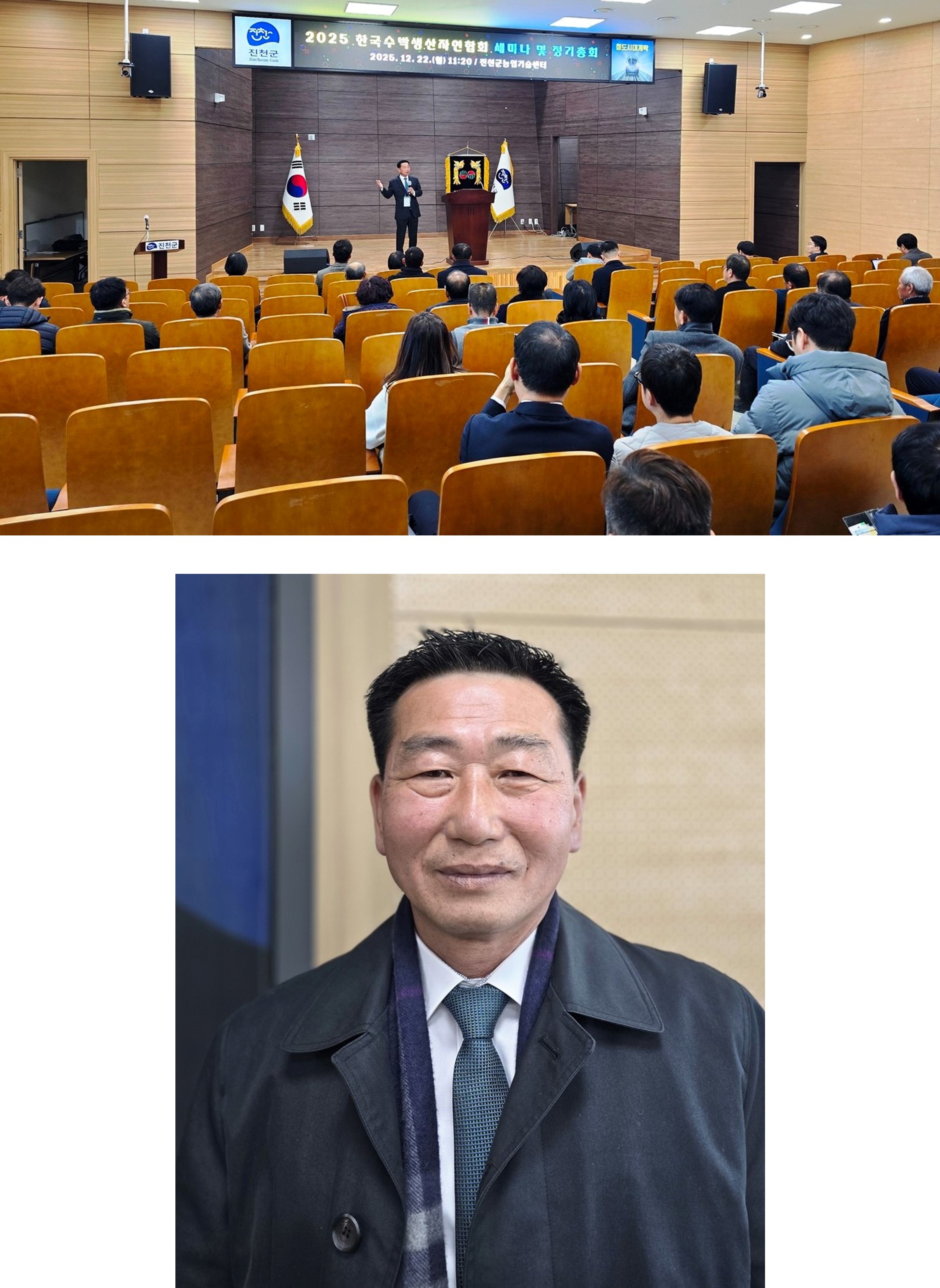 Çѱ¹¼ö¹Ú»ý»êÀÚ¿¬ÇÕȸ°¡ 12¿ù 22ÀÏ ÁøÃµ±º³ó¾÷±â¼ú¼¾ÅÍ¿¡¼­ ¡®2025³â Á¤±âÃÑȸ¡¯¸¦ °³ÃÖÇß´Ù. ÃÑȸ¿¡´Â Àü±¹ÀÇ ¼ö¹Ú »ý»ê ³ó°¡°¡ ¸ð¿© ±¹³» ¼ö¹Ú »ê¾÷ÀÇ ¹ßÀüÀ» À§ÇØ ÈûÀ» ¸ðÀ» °ÍÀ» ´ÙÁüÇß´Ù.
