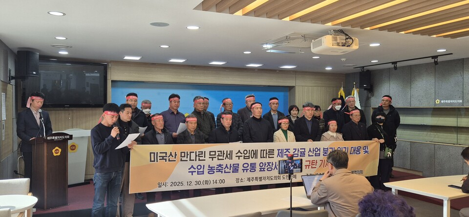 Á¦ÁÖÆ¯º°ÀÚÄ¡µµ³ó¾÷ÀδÜüÇùÀÇȸ(ȸÀå ±èÇÊȯ, Á¦ÁÖ³ó´ÜÇù)´Â Áö³ 30ÀÏ Á¦ÁÖÆ¯º°ÀÚÄ¡µµÀÇȸ µµ¹ÎÄ«Æä¿¡¼ ±âÀÚȸ°ßÀ» ¿°í ¹Ì±¹»ê °¨±Ö(¸¸´Ù¸°) ¹«°ü¼¼ ¼öÀÔÀÌ Á¦ÁÖ °¨±Ö»ê¾÷À» ºØ±« À§±â¿¡ ¸ô¾Æ³Ö°í ÀÖ´Ù°í È£¼ÒÇϰí, ³ó°¡ ÇÇÇØ ÃÖ¼Òȸ¦ À§ÇÑ Á¤ºÎ¡¤Á¦ÁÖµµÁ¤ÀÇ ½ÇÈ¿¼º ÀÖ´Â ´ëÃ¥ ¸¶·ÃÀ» Ã˱¸Çß´Ù.