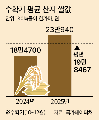2025³â ¼öÈ®±â »êÁö ½Ò°ªÀÌ ¿ª´ë ÃÖ°íÄ¡¸¦ ±â·ÏÇÑ °¡¿îµ¥ Á¤ºÎÀÇ °ø°øºñÃà¹Ì ¸ÅÀÔ°¡°Ýµµ óÀ½À¸·Î 8¸¸¿øÀ» ³Ñ¾î¼¹´Ù. »ý»êÀÚµéÀº ¹ü³ó¾÷°èÀÇ ³ë·ÂÀ¸·Î ´Þ¼ºÇÑ ¼º°ú¶ó¸ç ¾ÕÀ¸·Î Á¤ºÎ°¡ ½Ò°ªÀ» ¾ÈÁ¤ÀûÀ¸·Î °ü¸®ÇØ´Þ¶ó´Â ¸ñ¼Ò¸®¸¦ ³Â´Ù.